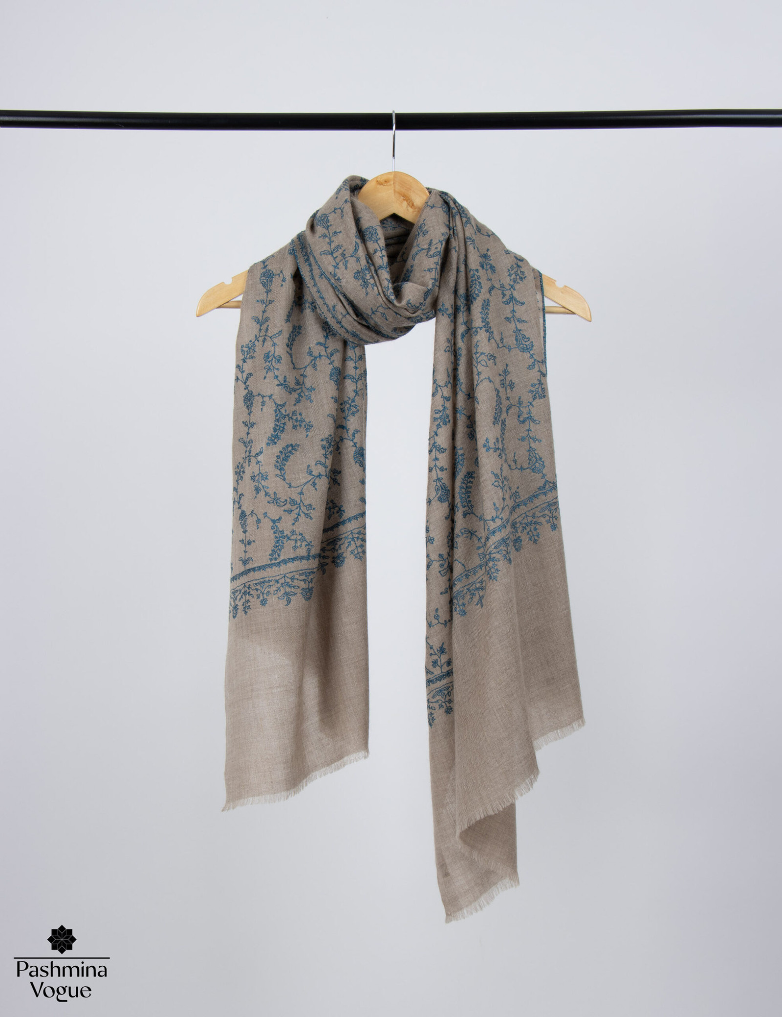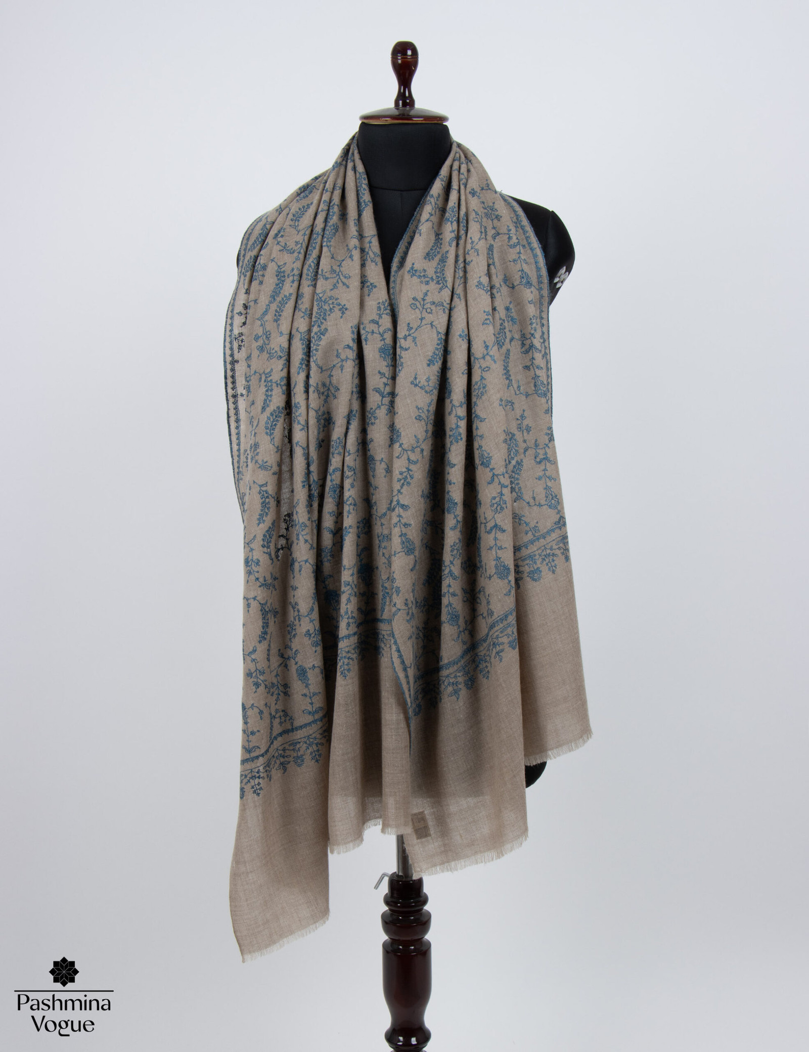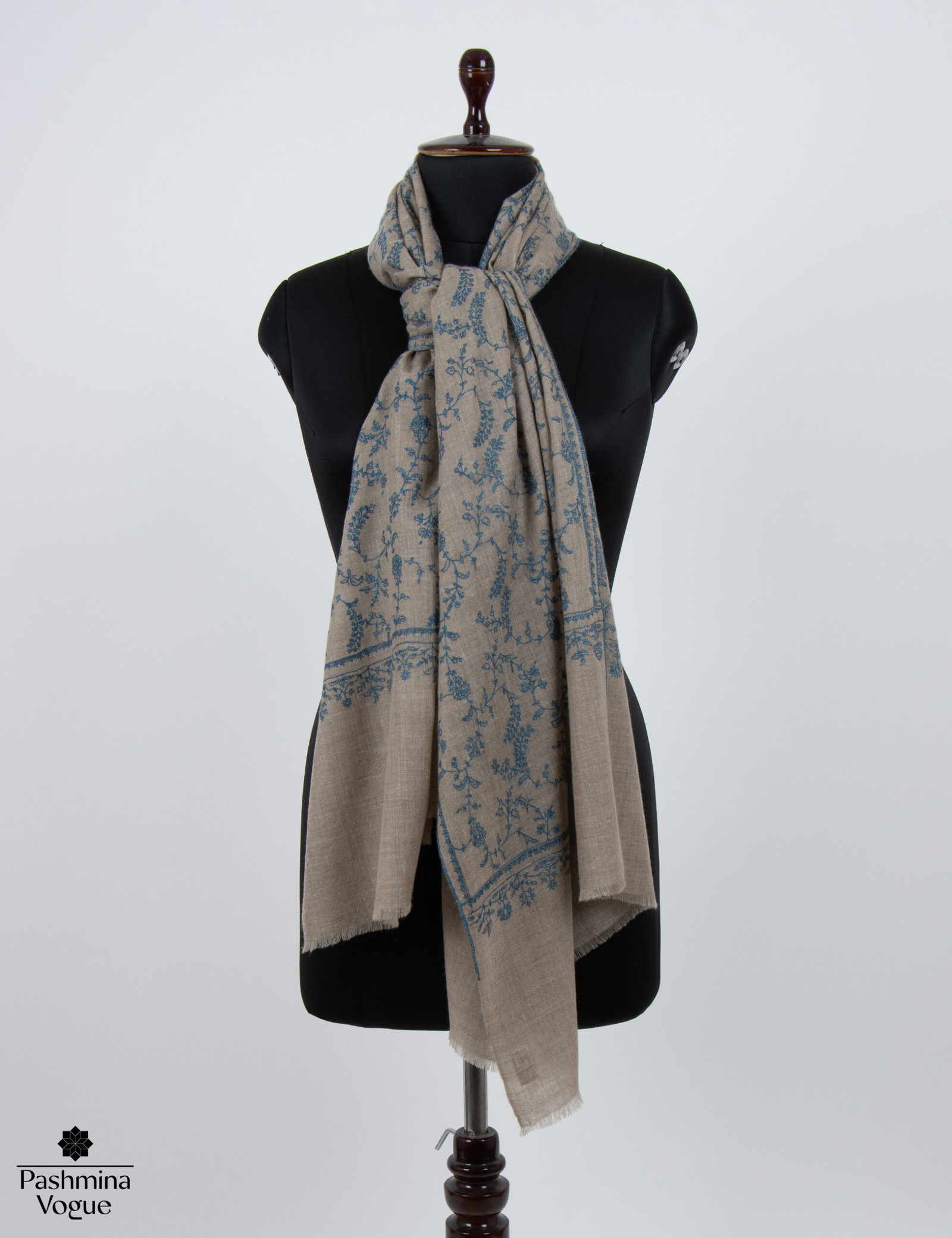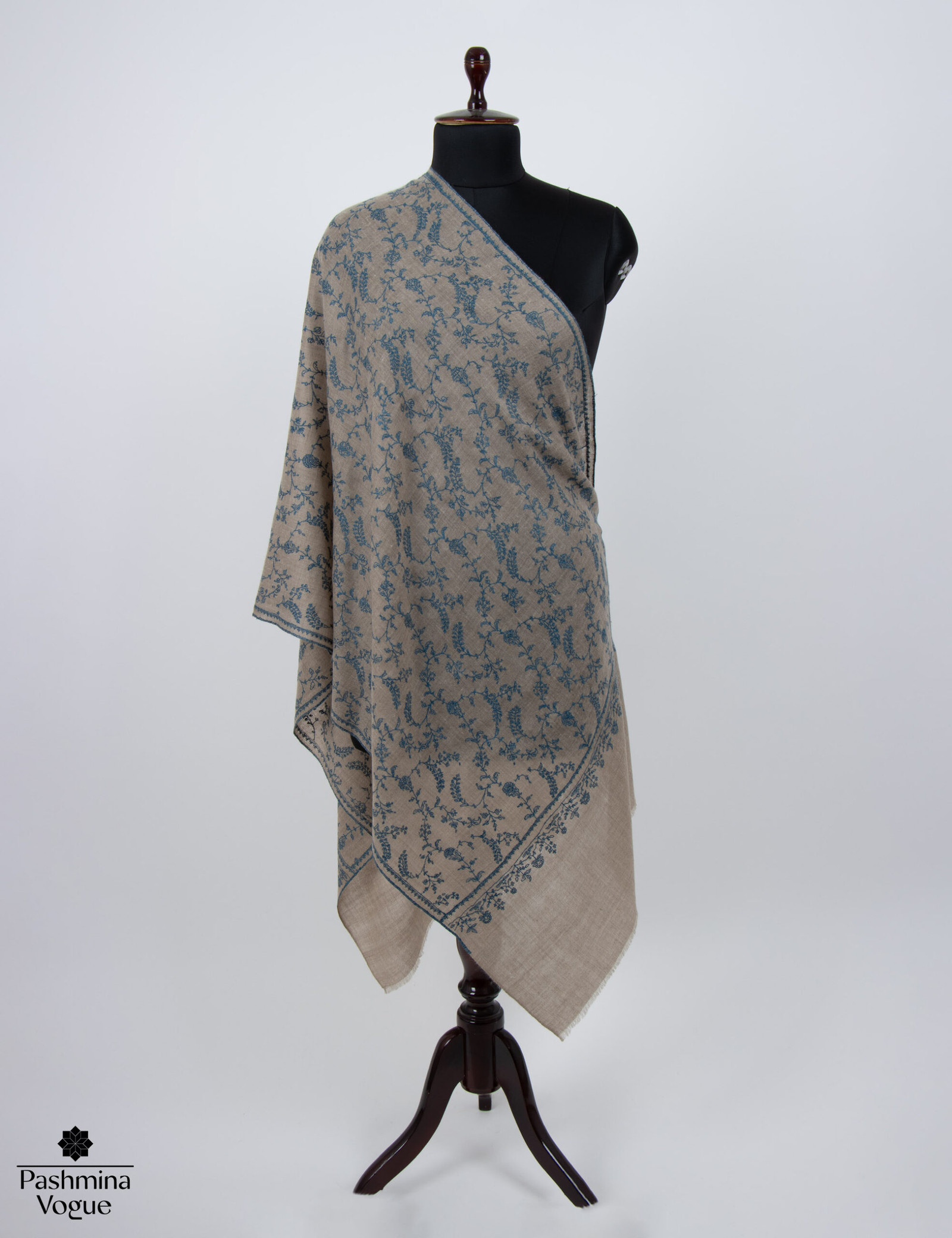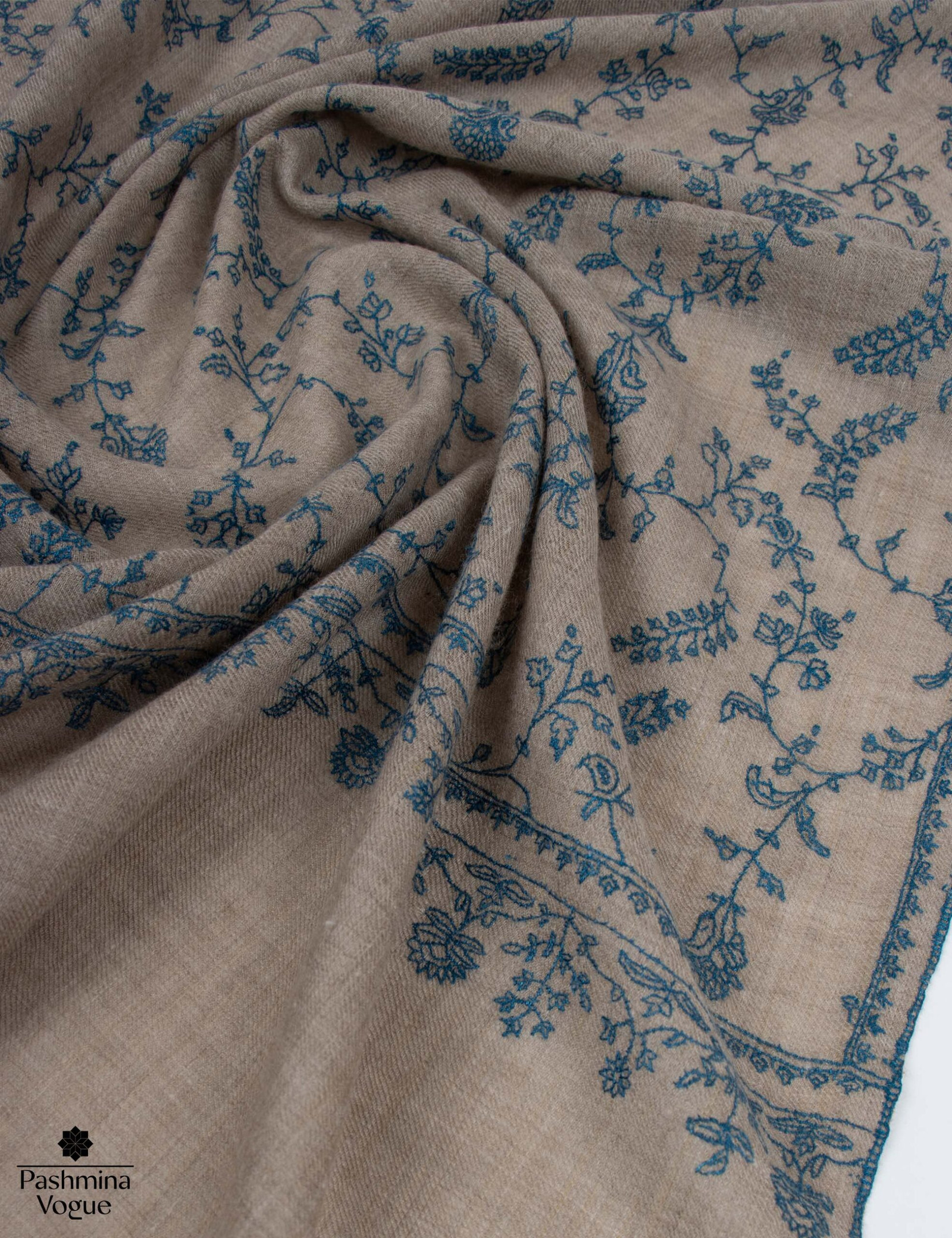 Beige Natural Pashmina Shawl – Hand-Embroidered Sozni Wraps