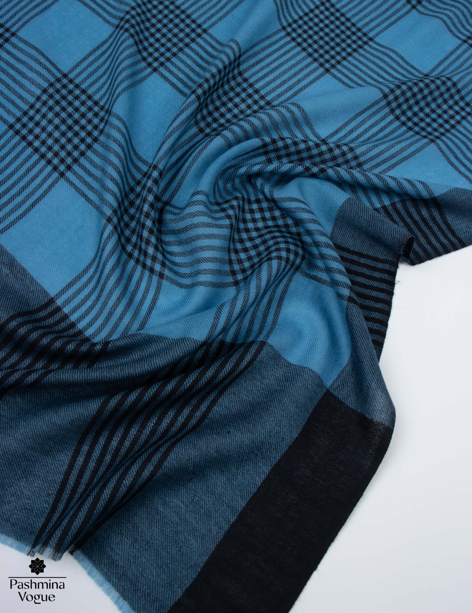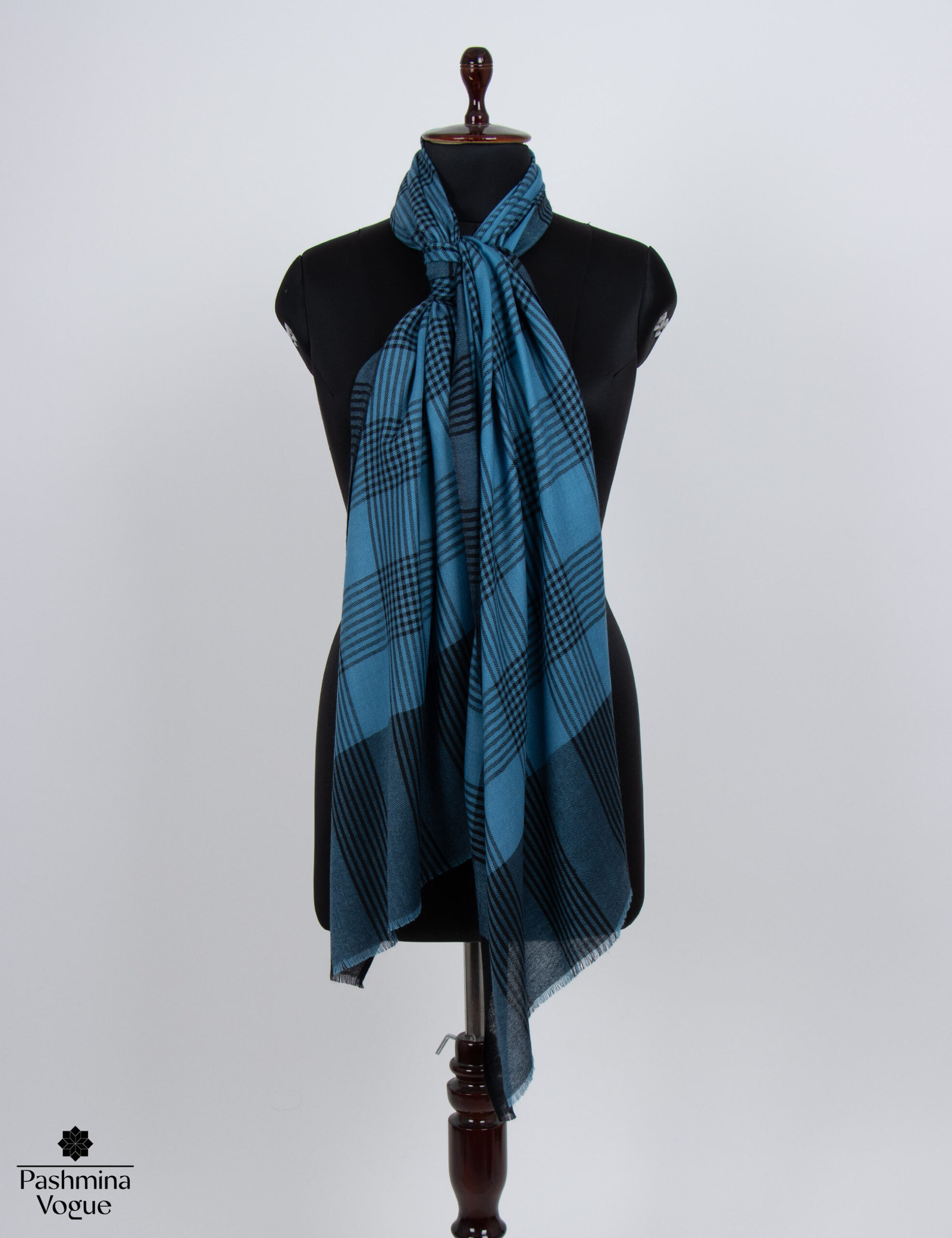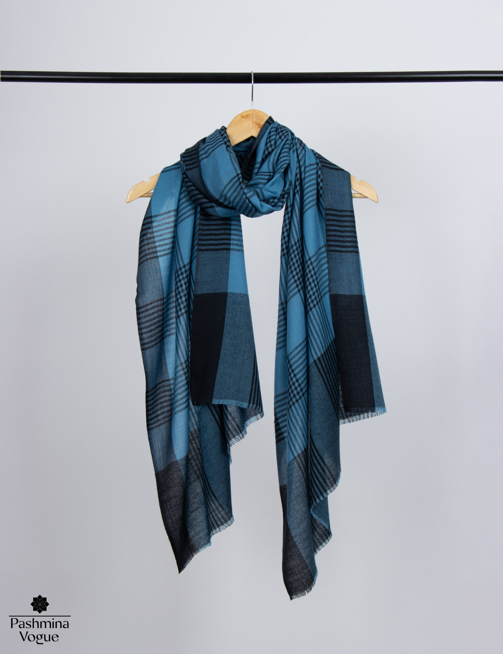 Black & Blue Checked Woolen Wrap – Soft Merino Wool Shawl