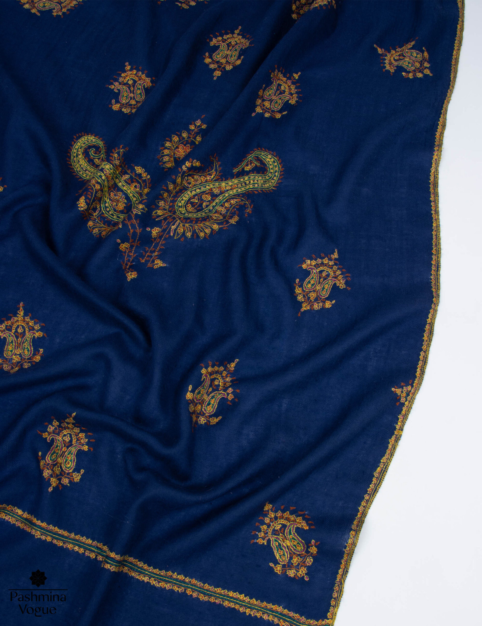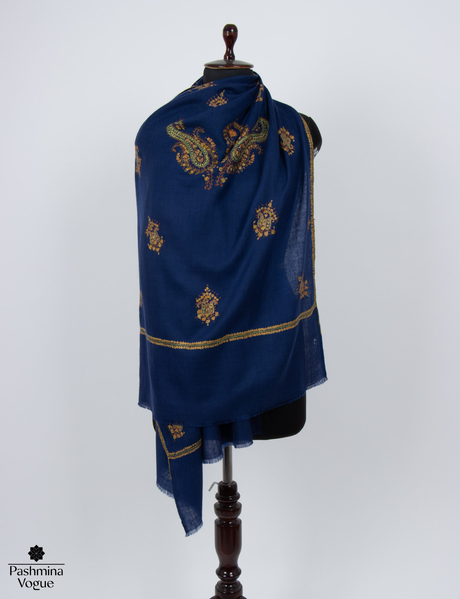 Wrap yourself in the captivating elegance of our Blue Pashmina Scarf. This exquisite accessory is crafted from the finest 100% pure cashmere (pashmina), offering an unparalleled soft feel, lightweight comfort, and superior warmth. The rich blue hue provides a stunning backdrop for meticulous Kashmiri Hand Embroidered patterns—delicate needlework that showcases authentic artisanal mastery. This luxurious Cashmere Wrap is a timeless statement piece, perfect for adding a sophisticated touch of color, artistry, and cozy warmth to any ensemble.