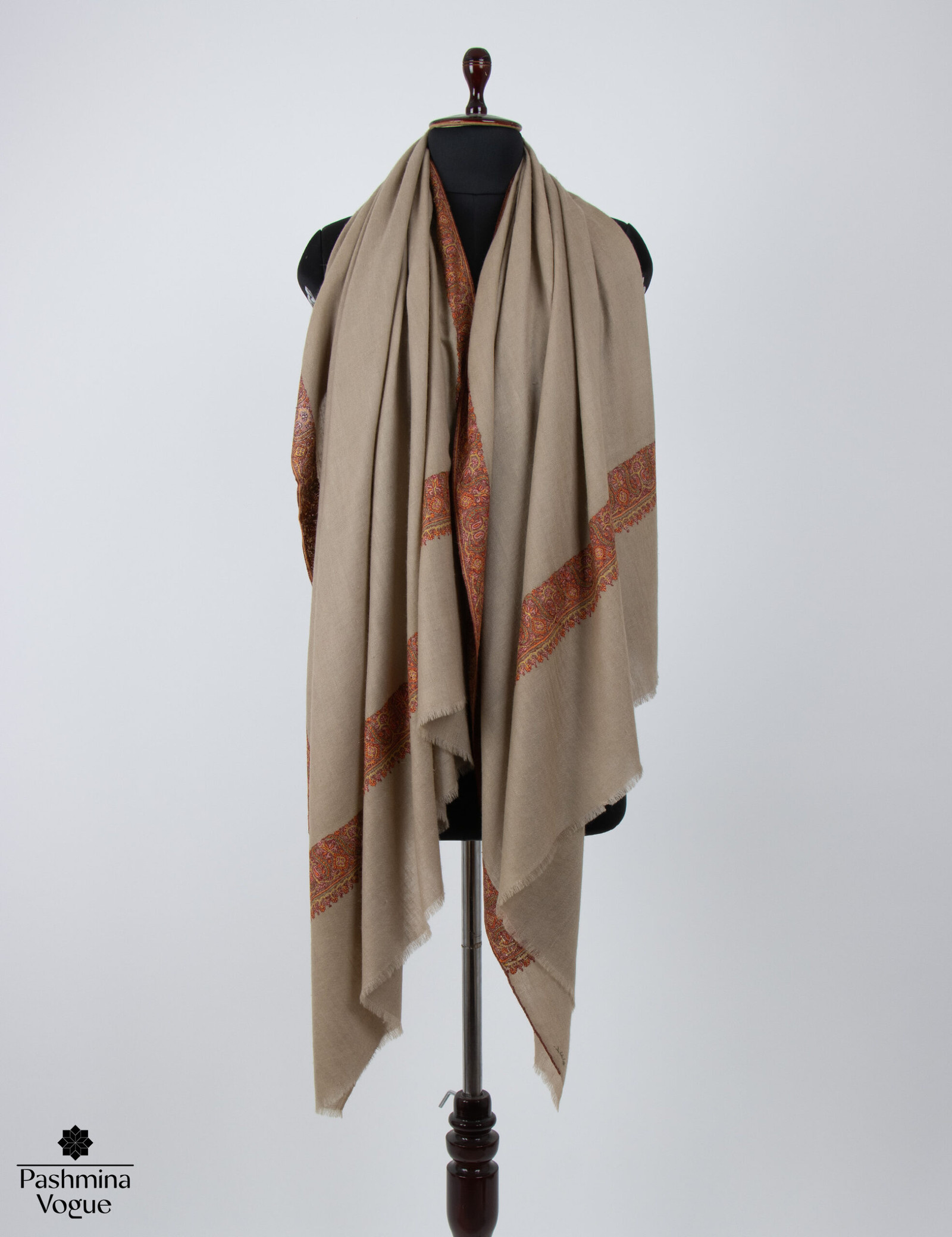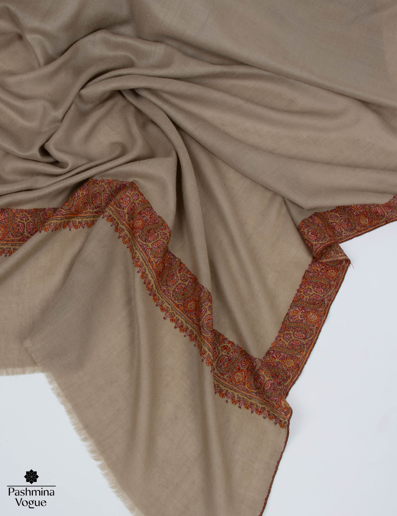 Brown Kashmiri Pashmina Scarf – Sozni Embroidered Cashmere