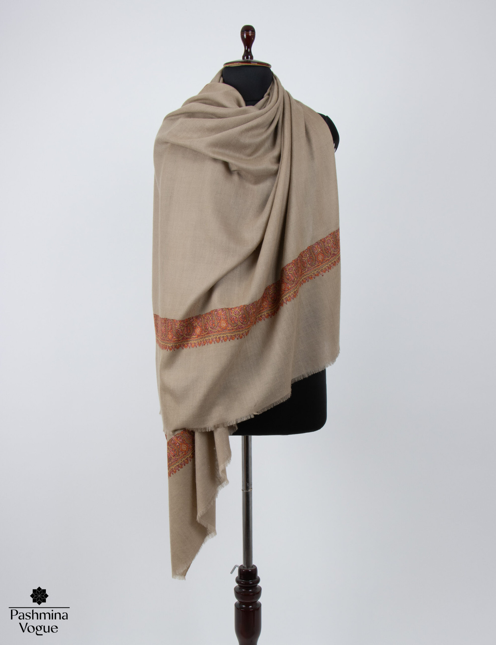 Wrap yourself in the earthy elegance of our Brown Kashmiri Pashmina Scarf. This handwoven cashmere shawl is crafted from 100% pure Pashmina wool, sourced from the high-altitude goats of the Himalayas. The deep, chocolate-brown hue provides a sophisticated and versatile base for traditional Sozni embroidery, a meticulous hand-needlework technique unique to the Kashmir Valley.