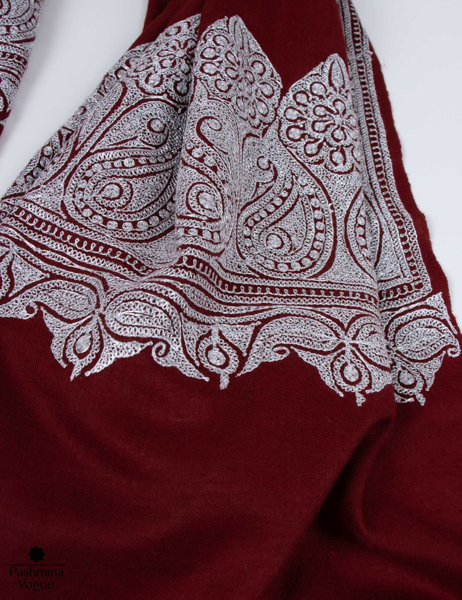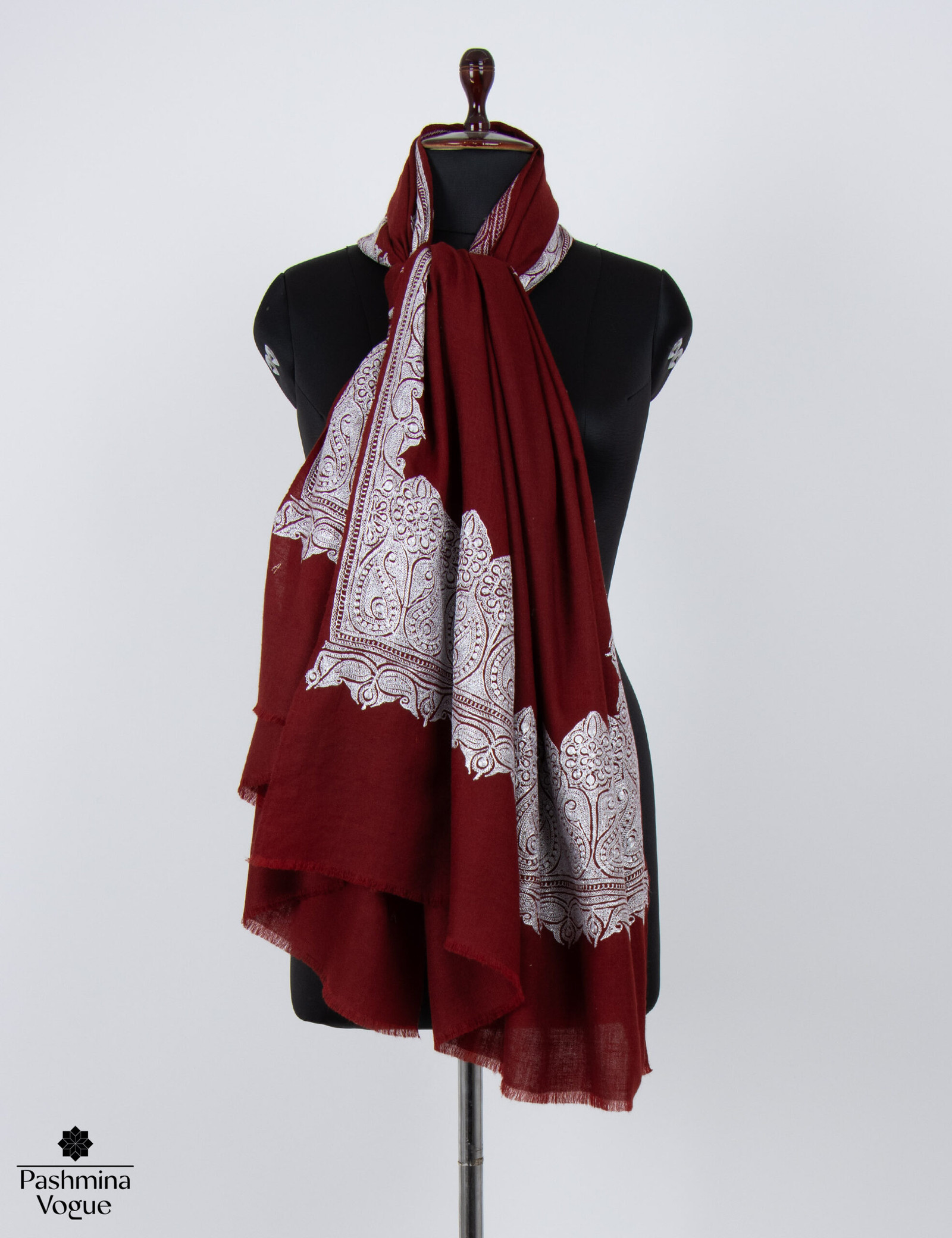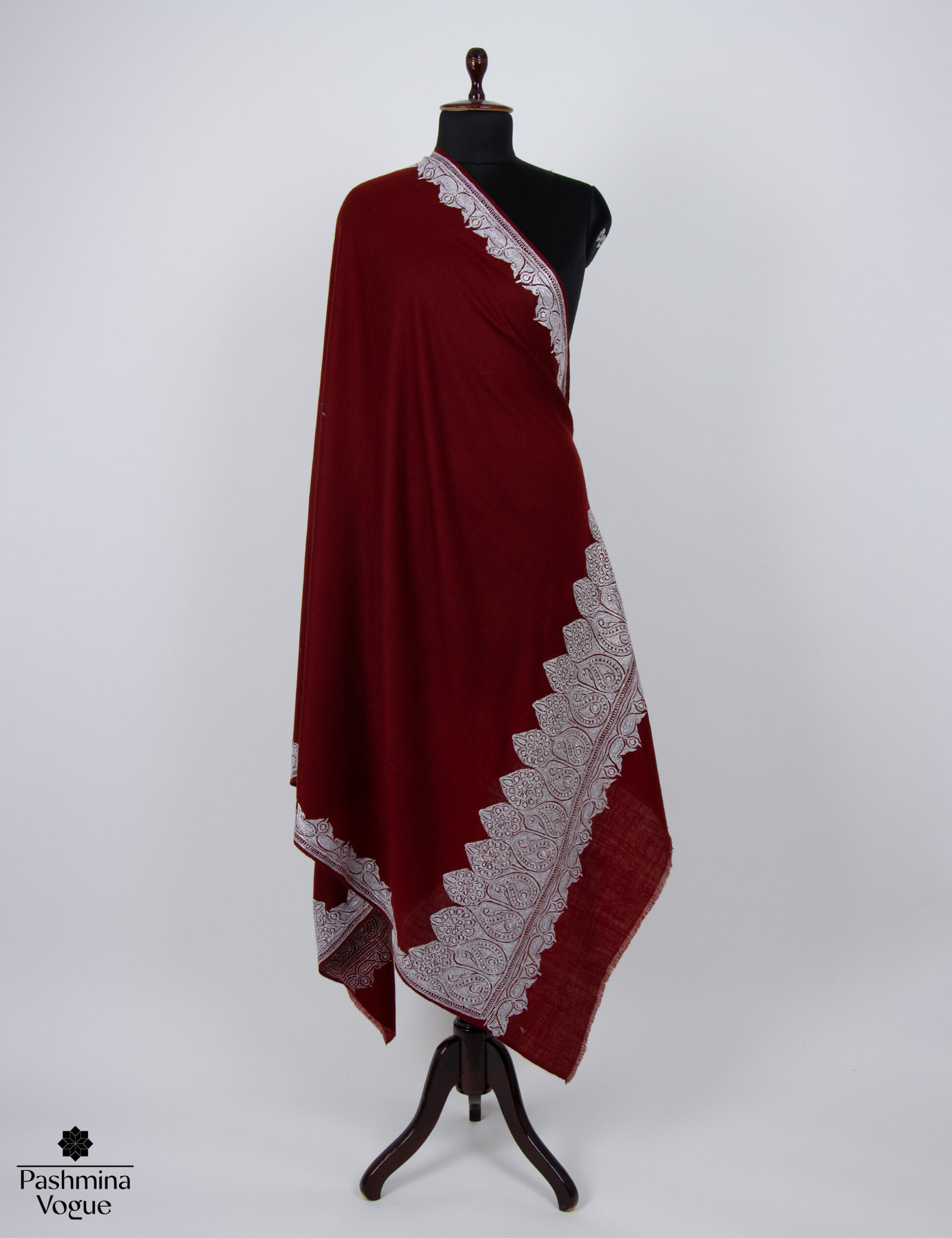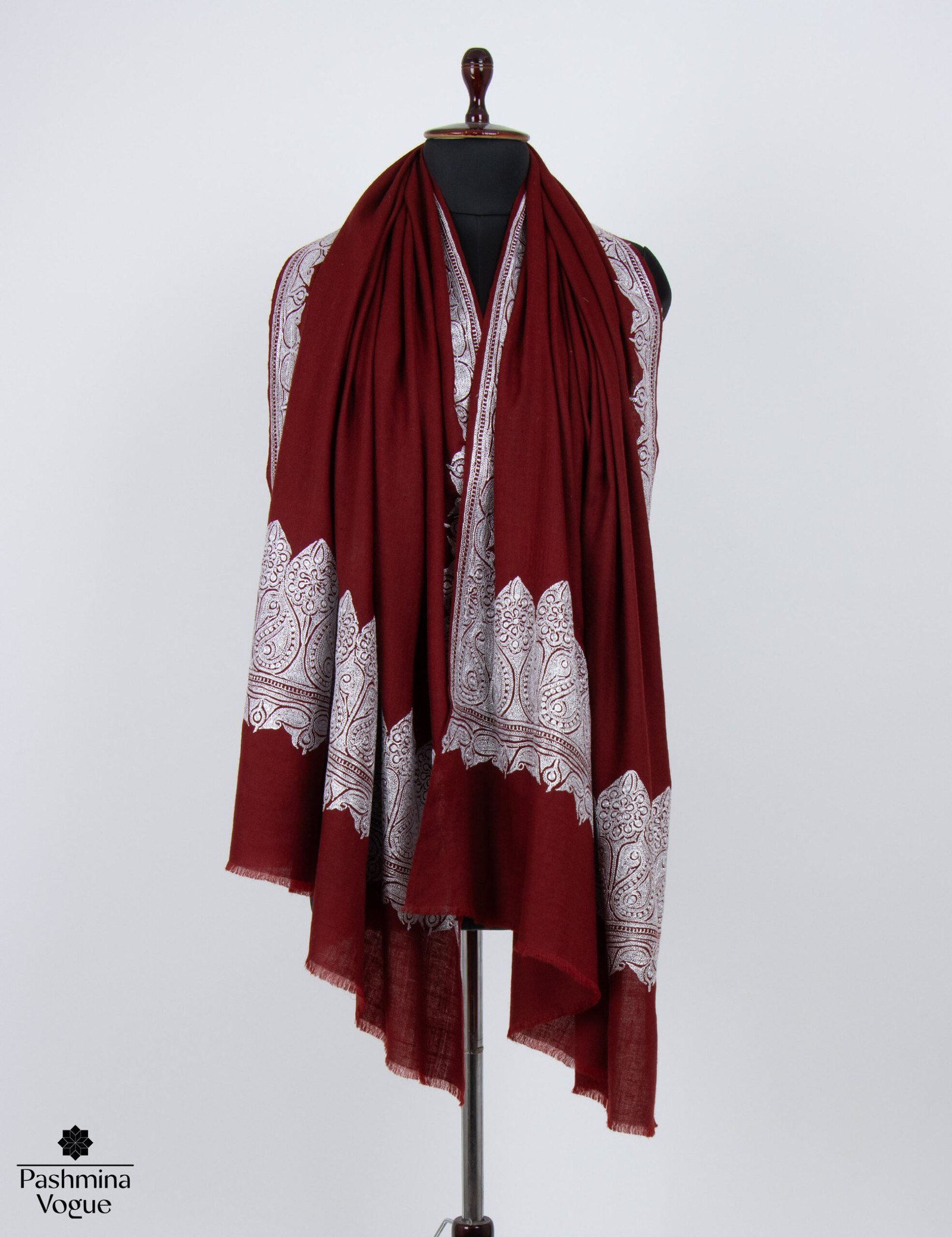 Burgundy Pashmina Shawl – Handwoven Tilla Embroidery Wrap