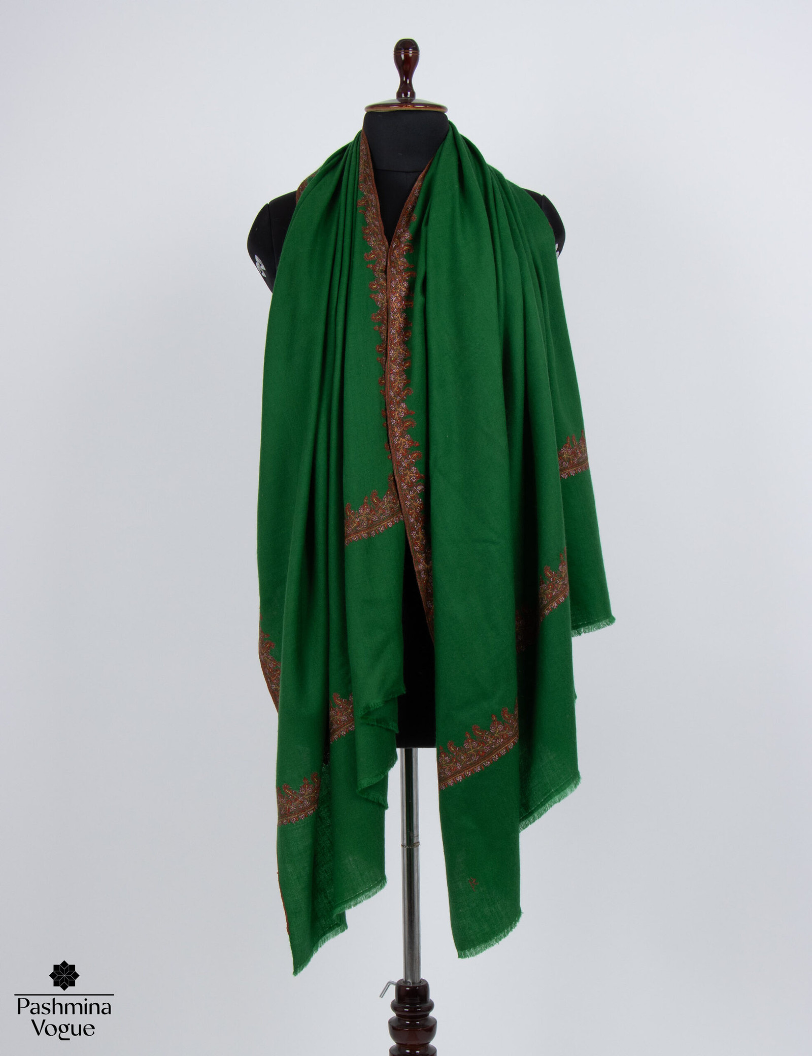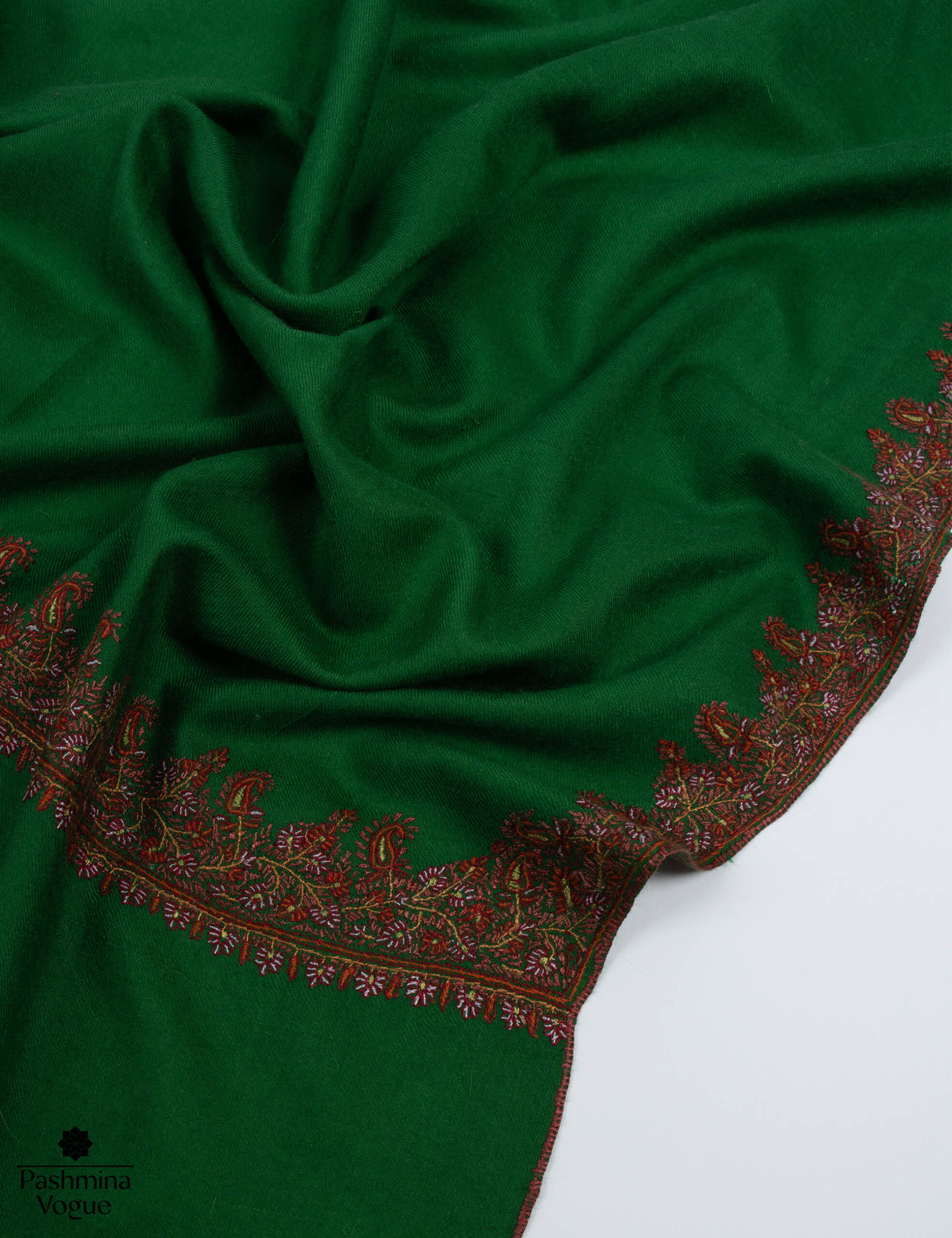 Wrap yourself in the luxurious artistry of our Green Pashmina Scarf. This exquisite shawl is a masterpiece of authentic craftsmanship, meticulously woven from the finest 100% pure cashmere (pashmina). The rich green hue provides a stunning backdrop for delicate hand embroidery, a signature of Kashmir Shawl artistry that adds intricate, timeless detail. Incredibly soft, lightweight, and warm, this scarf offers a luxurious drape and is a versatile, elegant accessory for any season.