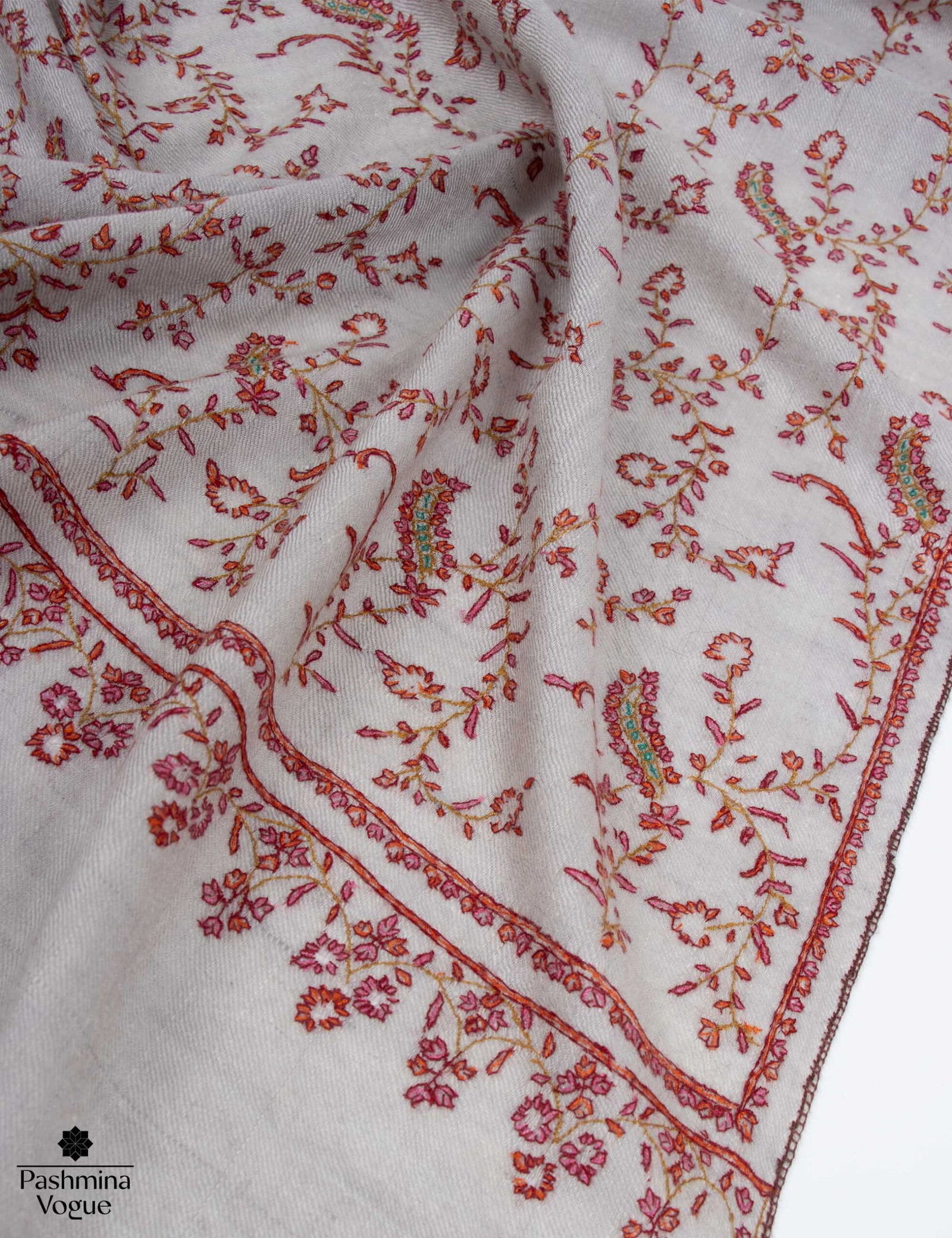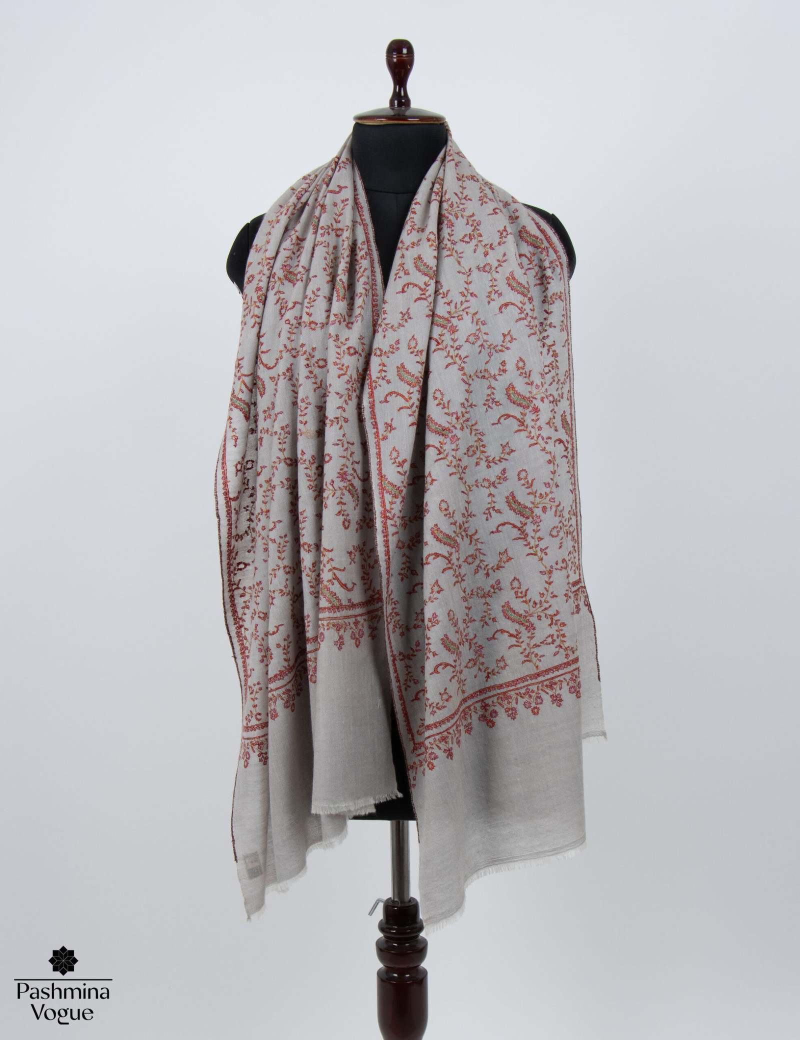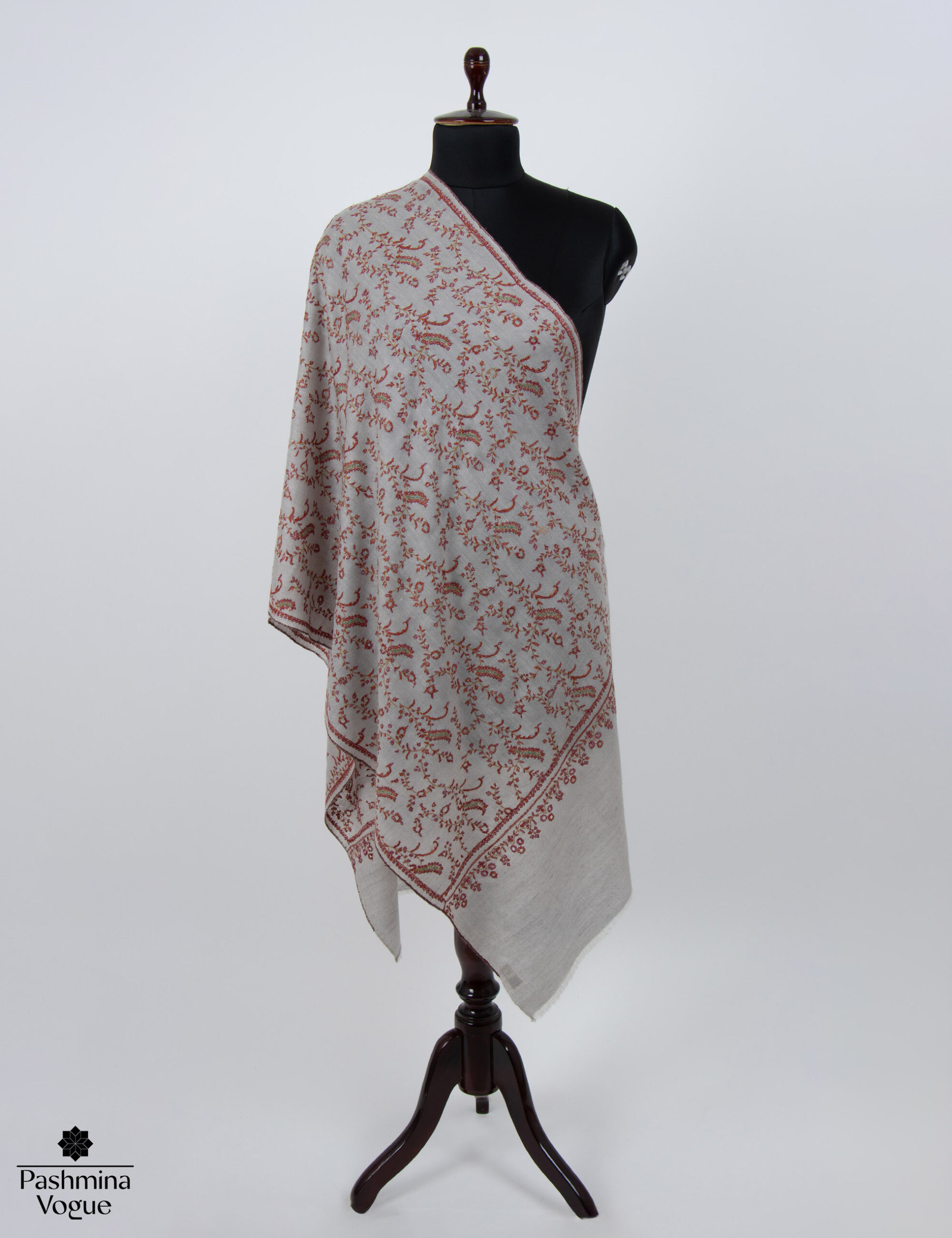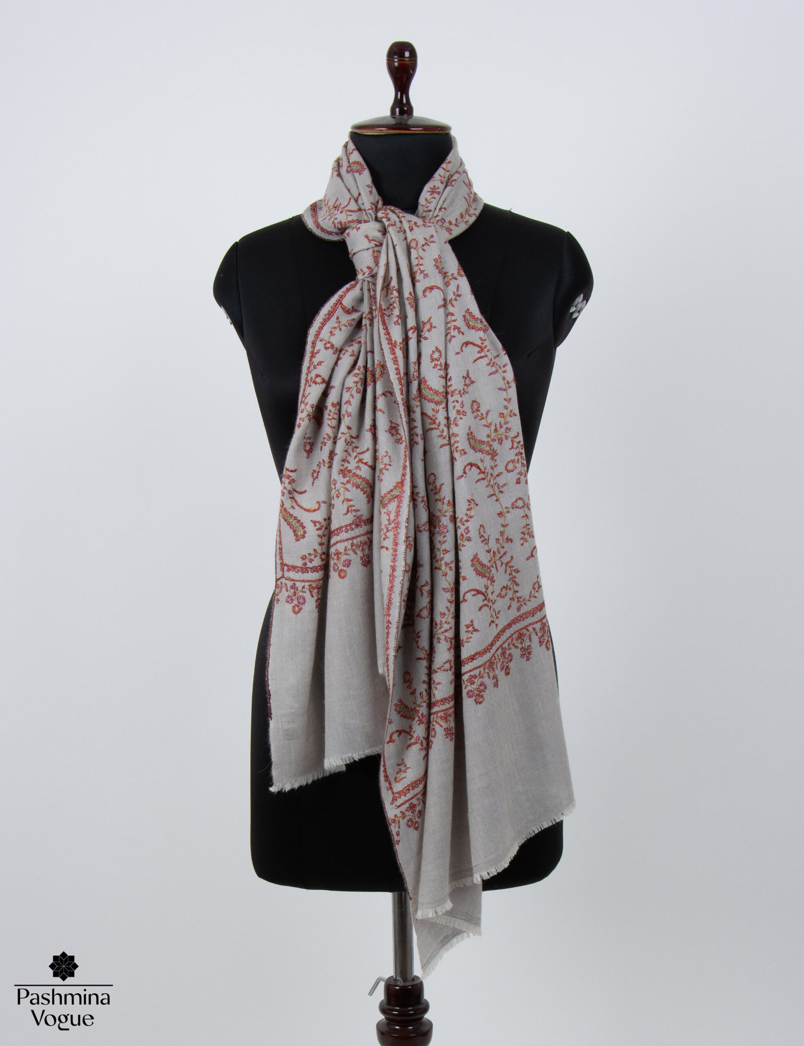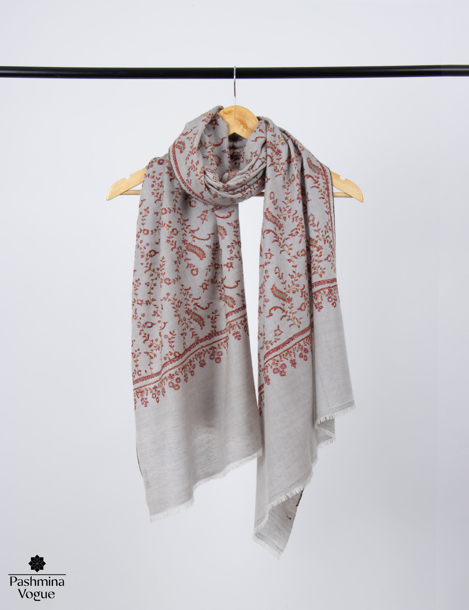 Grey Handmade Pashmina Scarf – Embroidered Winter Shawl