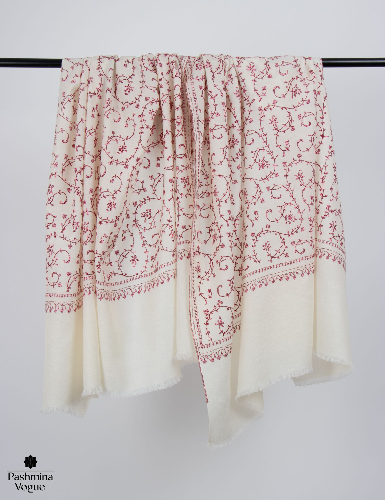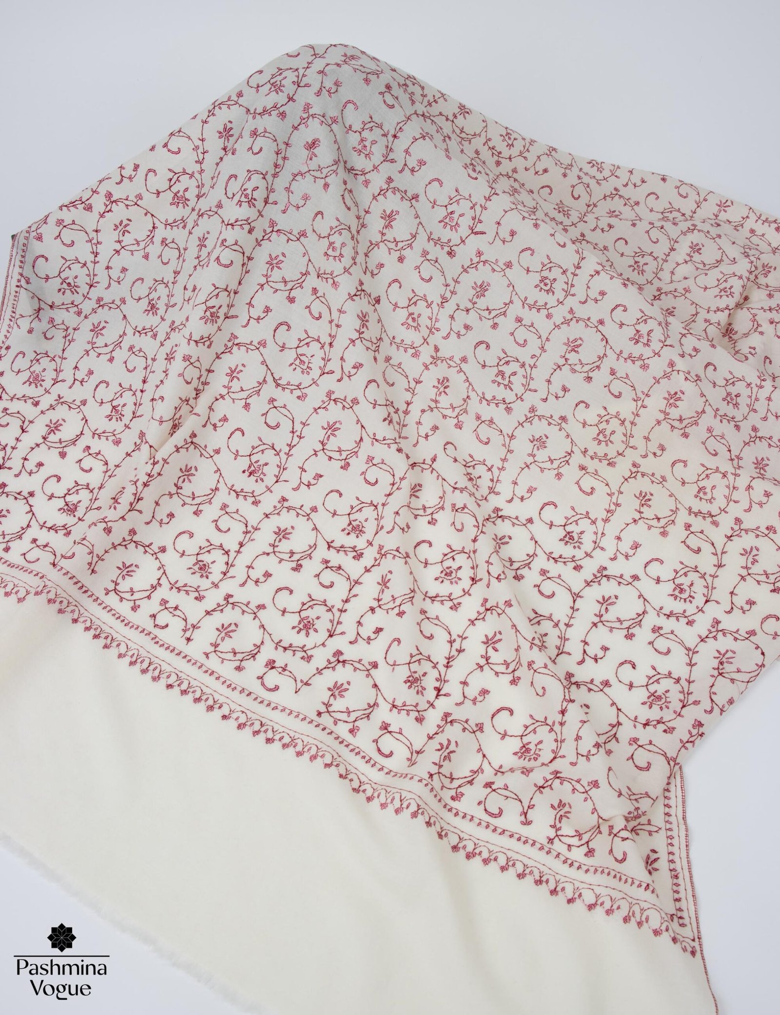 This Kashmiri Sozni shawl serves as a stunning showcase of heritage craftsmanship. Each scarf features intricate hand-embroidery created by master artisans in the Kashmir Valley using the ancient Sozni needlework technique. The delicate floral and paisley patterns are stitched with such precision they appear to be part of the fabric itself. Whether used as a sophisticated winter wrap or a statement accessory for formal events, this handcrafted scarf offers a perfect blend of modern comfort and timeless tradition.