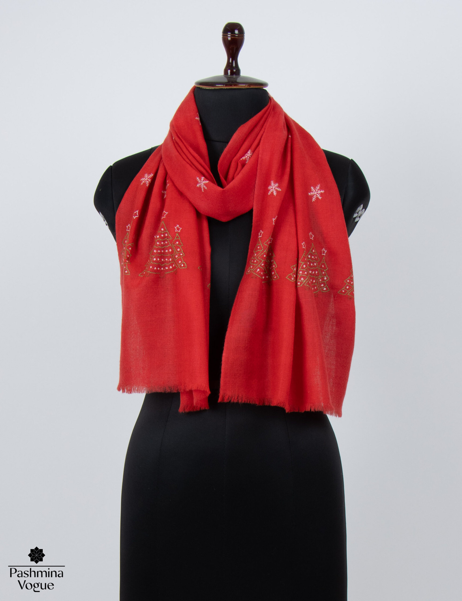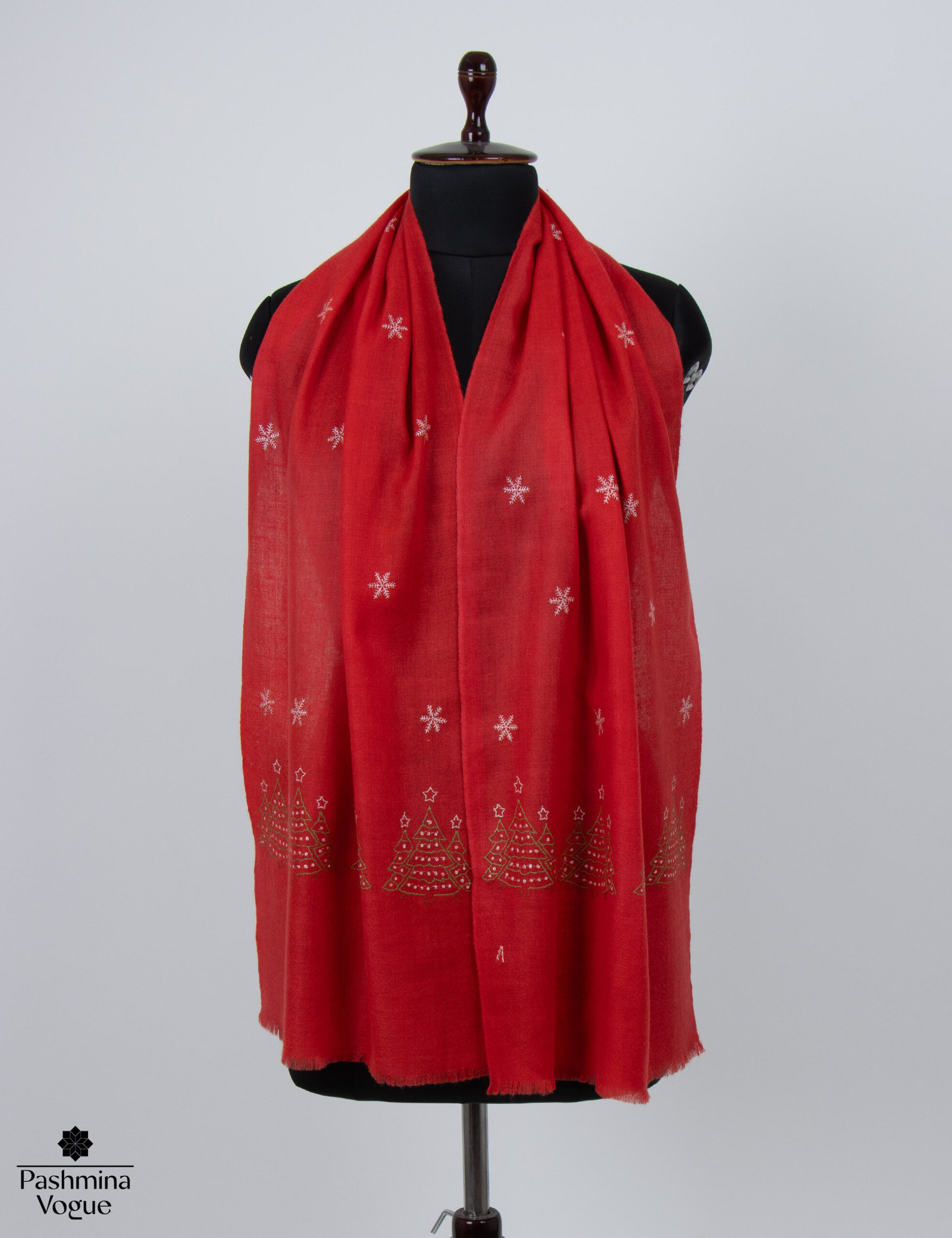 Celebrate the season with our festive Hand Embroidered Pashmina Scarf featuring the unique Christmas Tree Wrap design. This luxurious accessory is crafted from the finest 100% pure cashmere (pashmina), ensuring an unparalleled soft feel, lightweight warmth, and elegant drape. The fine, meticulous hand embroidery depicts stylized Christmas Tree motifs, making this shawl a beautiful and unique statement piece perfect for holiday gatherings or as a cherished seasonal gift. Embrace the warmth and festive spirit with this artistic and cozy Pure Cashmere Wrap.