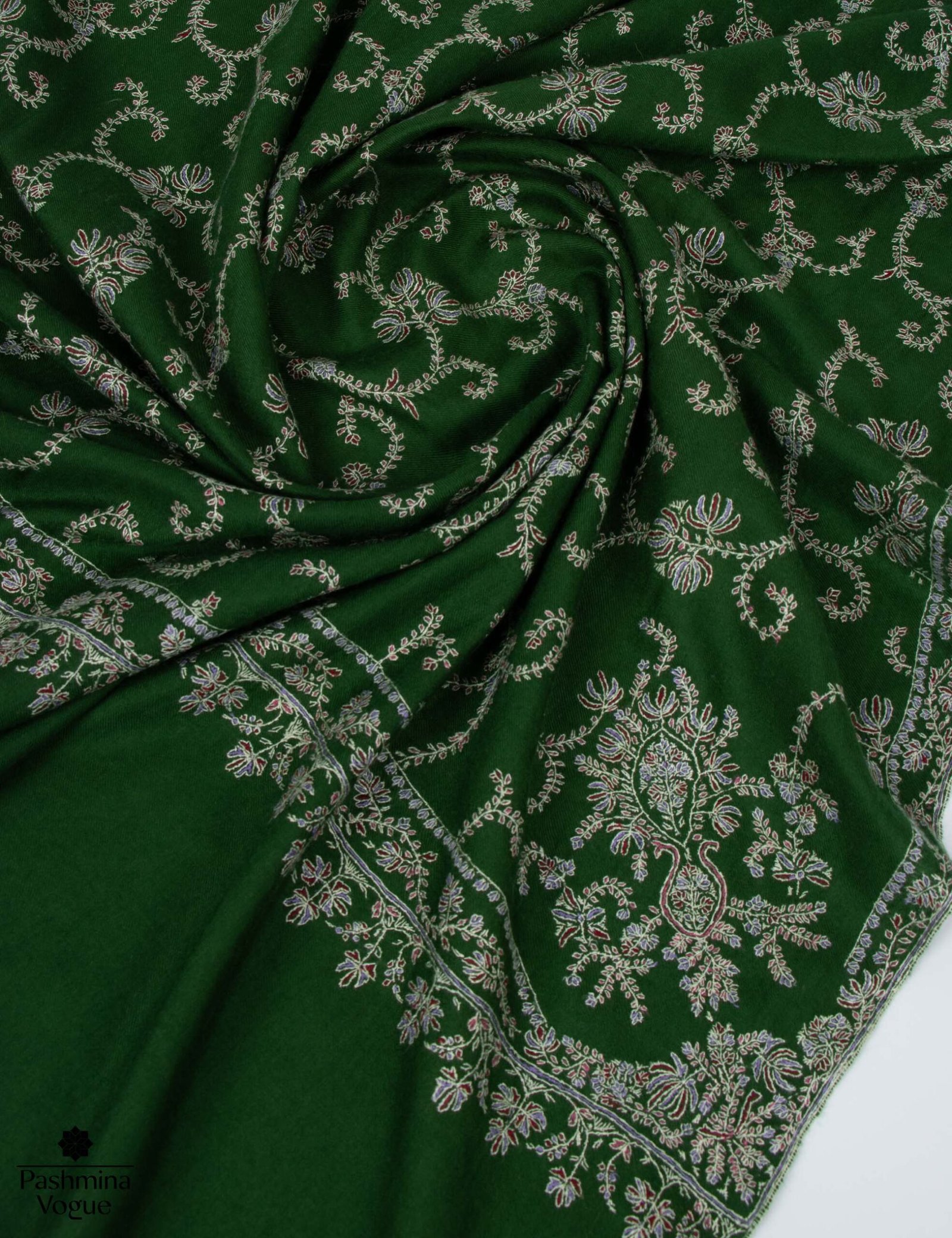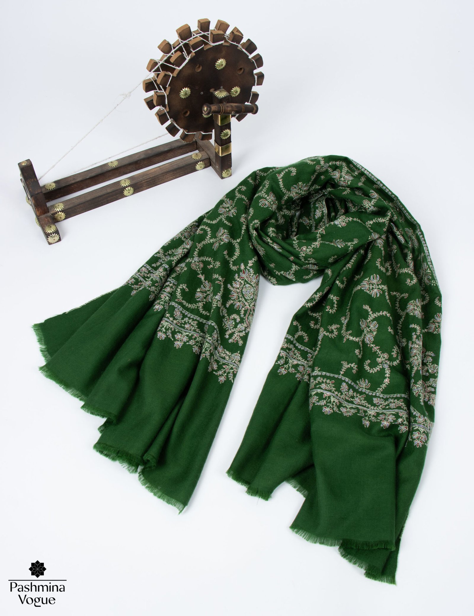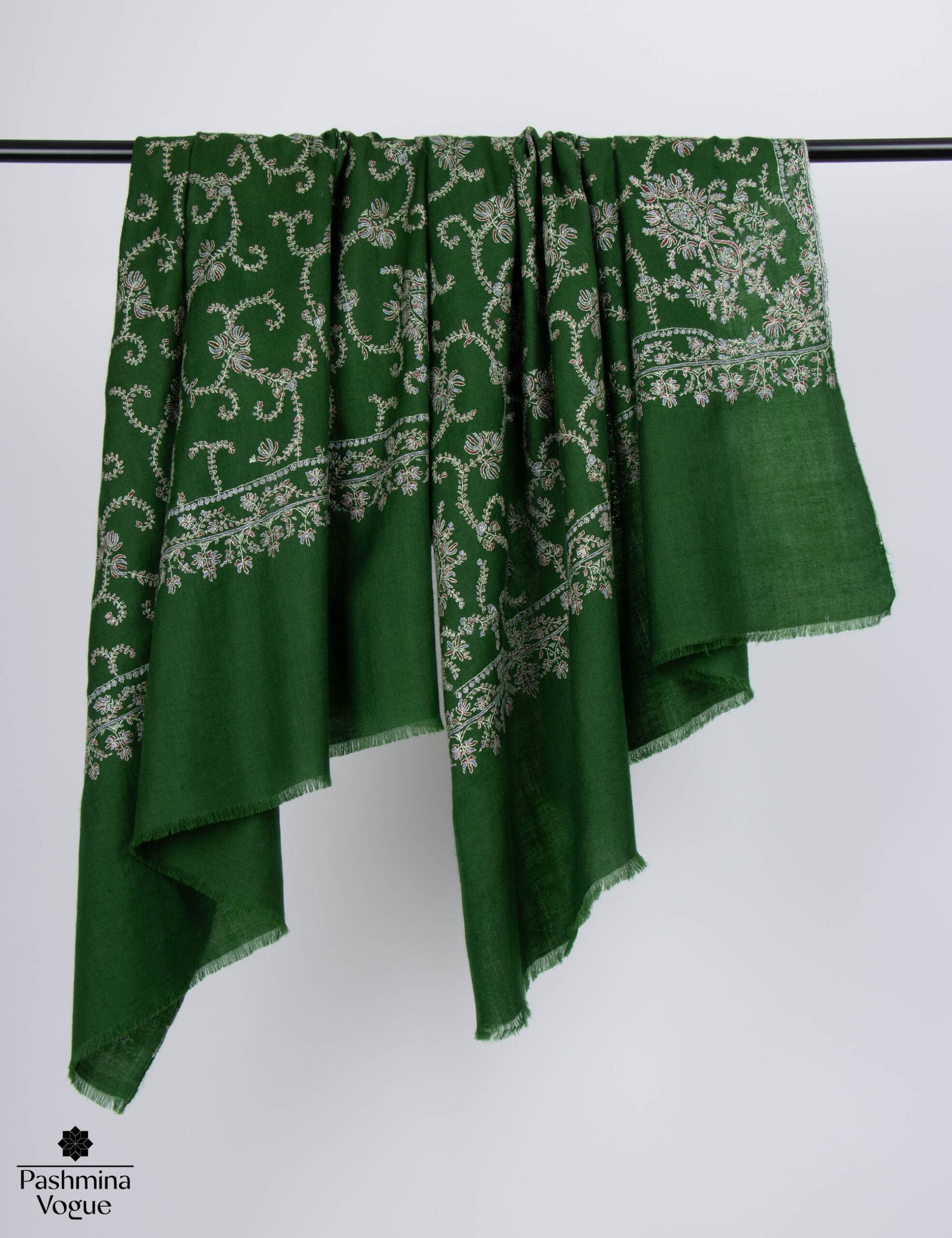 Gift a piece of timeless heritage with our Made in Kashmir: Handwoven Green Pashmina Shawl. This elegant wrap is meticulously crafted from 100% pure pashmina wool, hand-spun and hand-woven by master artisans using centuries-old techniques. The vibrant green hue serves as a lush backdrop for intricate Sozni hand-embroidery, adding a layer of rich texture and sophisticated artistry to the piece.