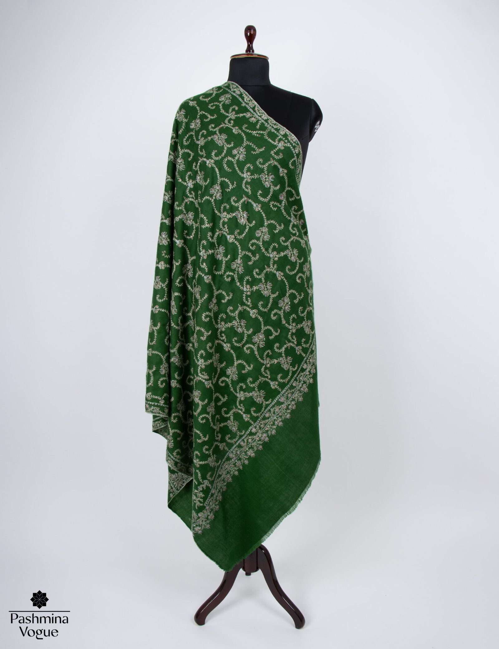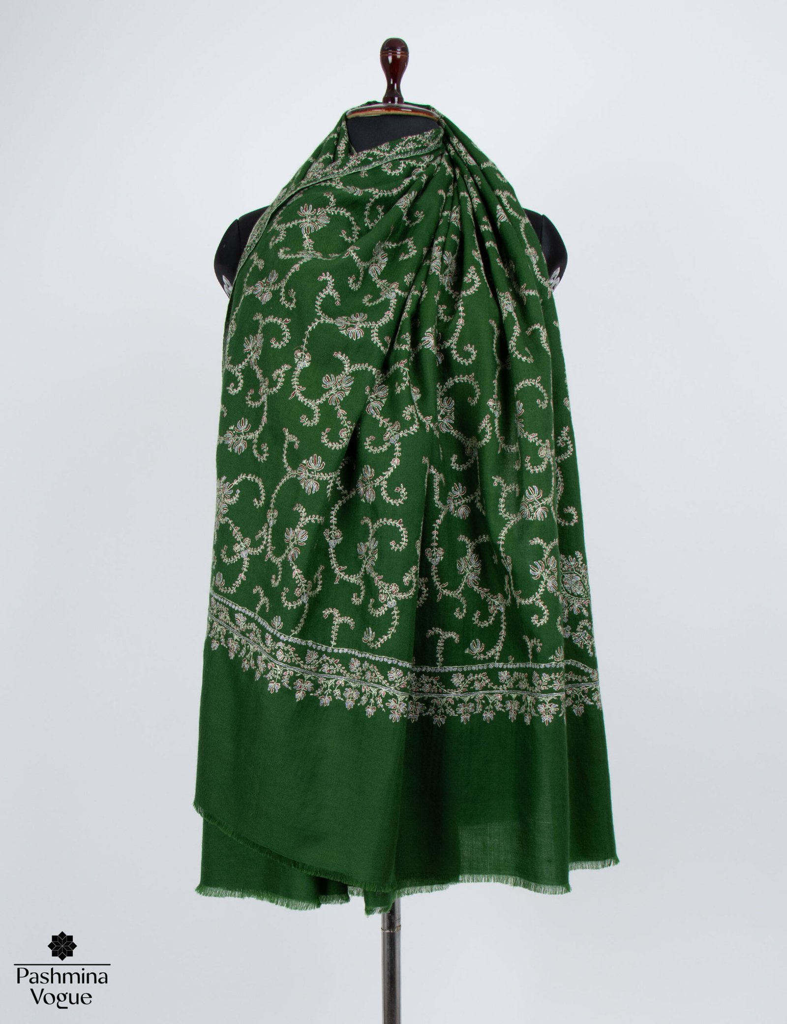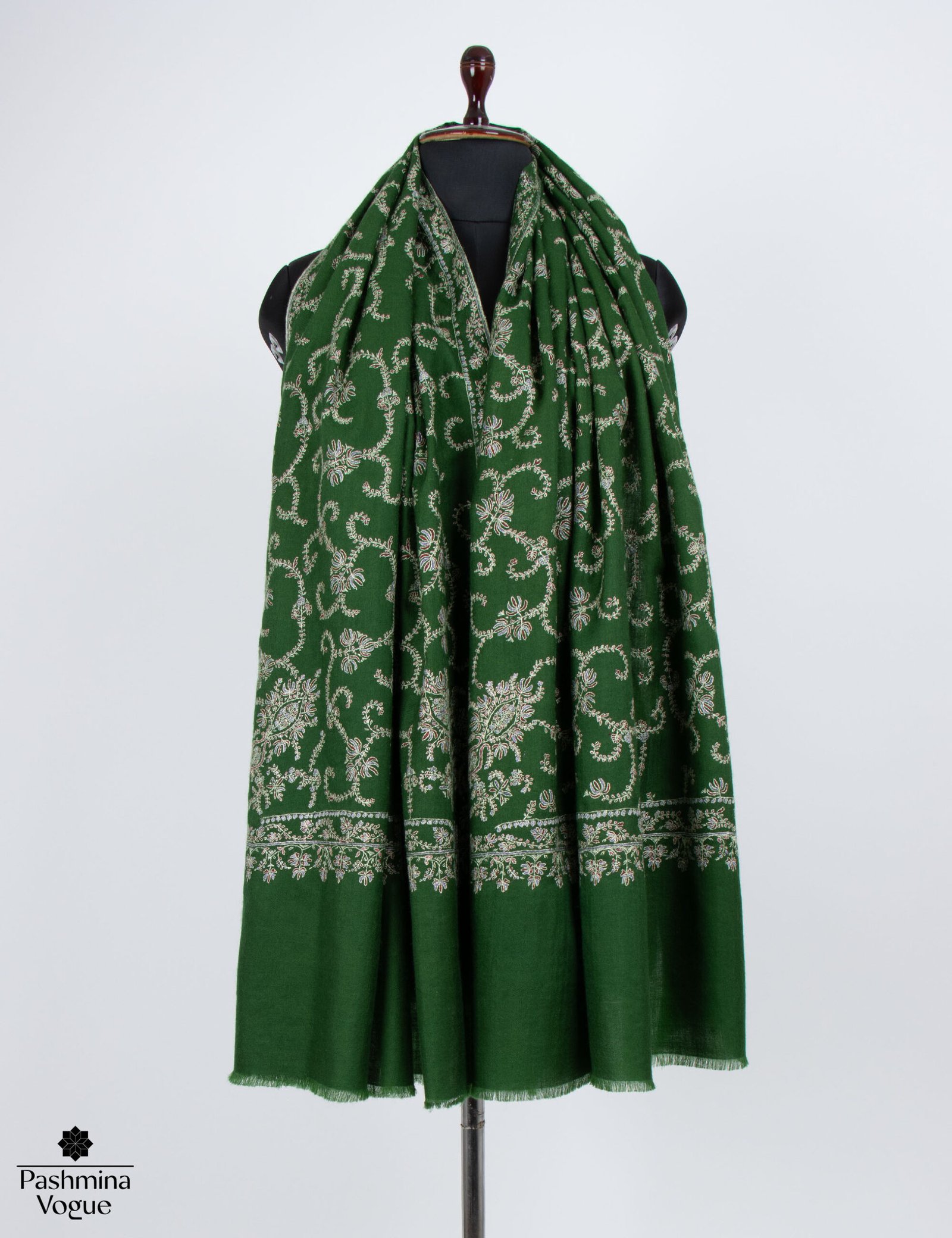 Gift a piece of timeless heritage with our Made in Kashmir: Handwoven Green Pashmina Shawl. This elegant wrap is meticulously crafted from 100% pure pashmina wool, hand-spun and hand-woven by master artisans using centuries-old techniques. The vibrant green hue serves as a lush backdrop for intricate Sozni hand-embroidery, adding a layer of rich texture and sophisticated artistry to the piece.