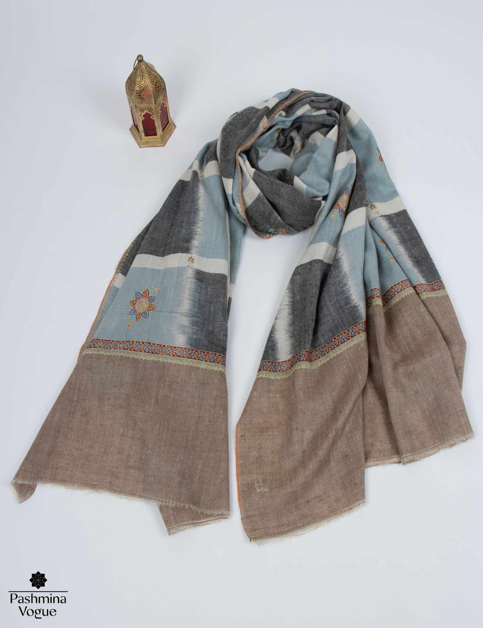 Its stunning mix of colors forms a visual harmony that draws the eye and soothes the senses. Each thread reflects exceptional skill, offering a shawl that feels as exquisite as it looks. The Heavenly Hue Pashmina Shawl is not just an accessory—it’s a celebration of pure craftsmanship and natural beauty.