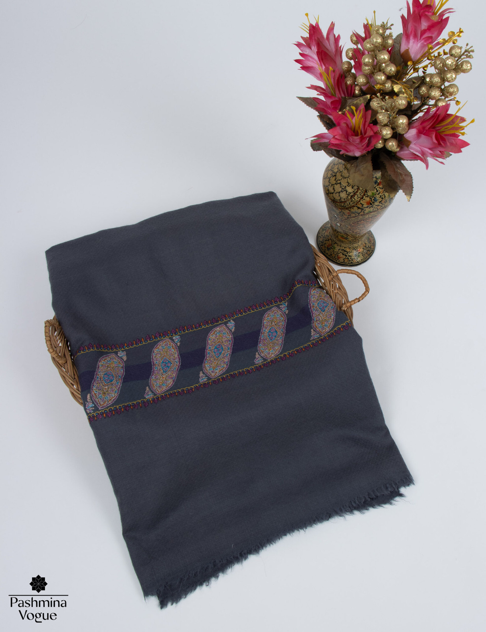Grey Pashmina Scarf for Girls – Handwoven Wrap