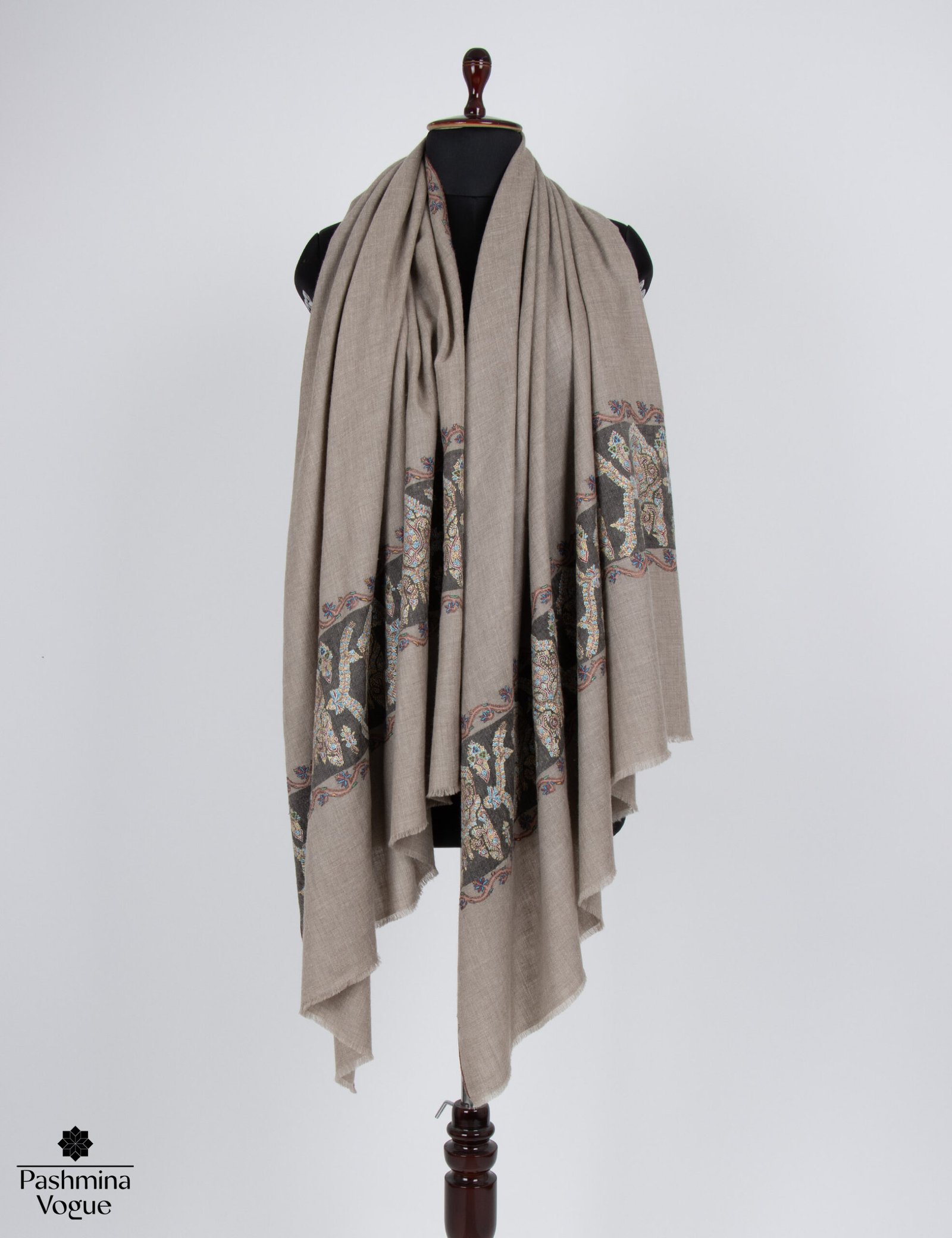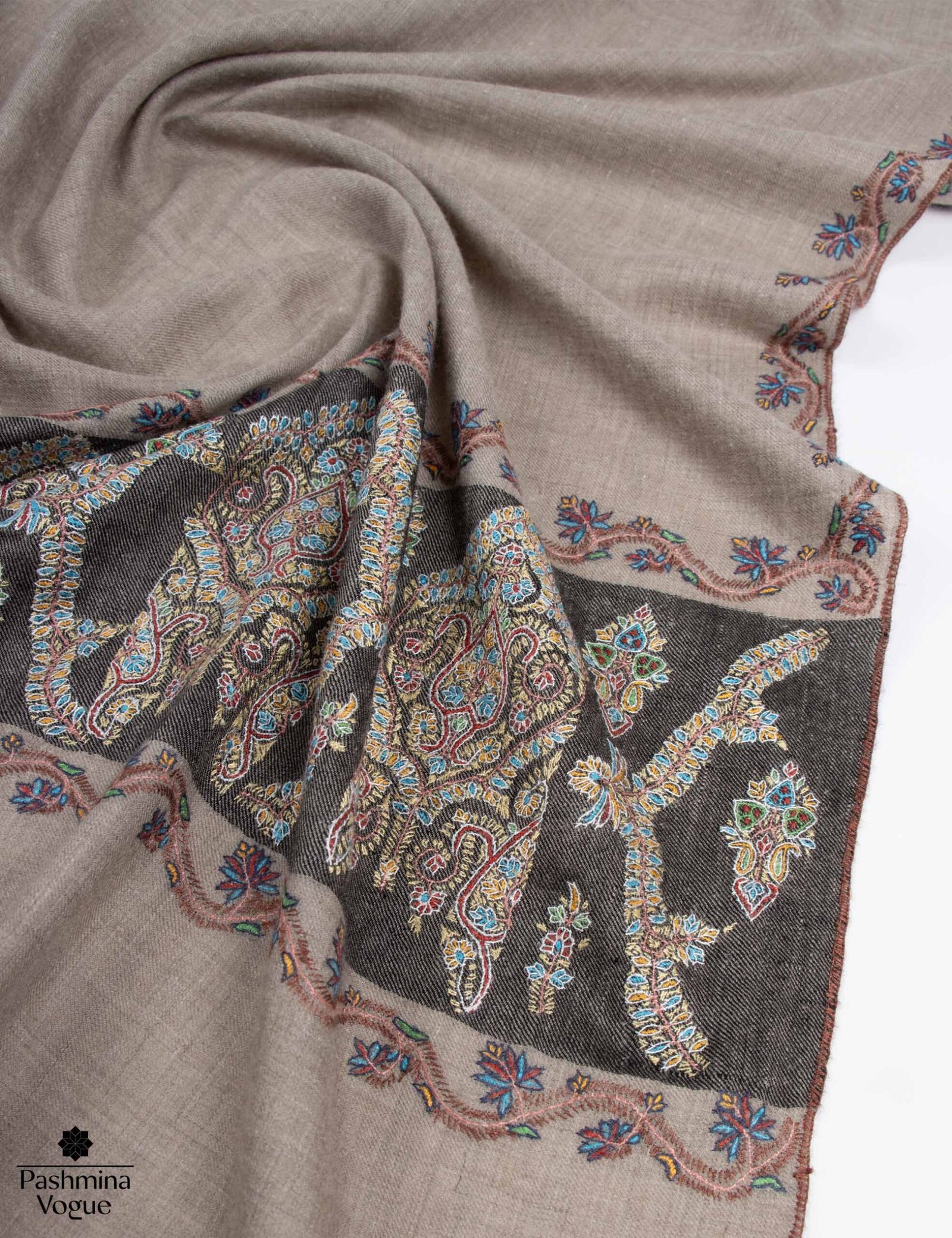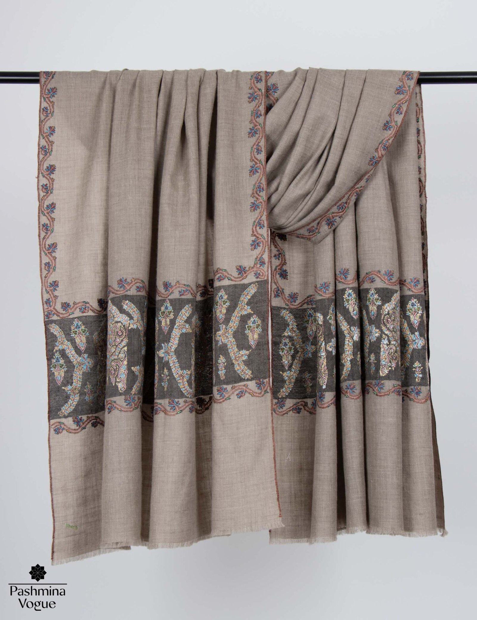 Natural Hand Embroidered Cashmere Wrap Shawl