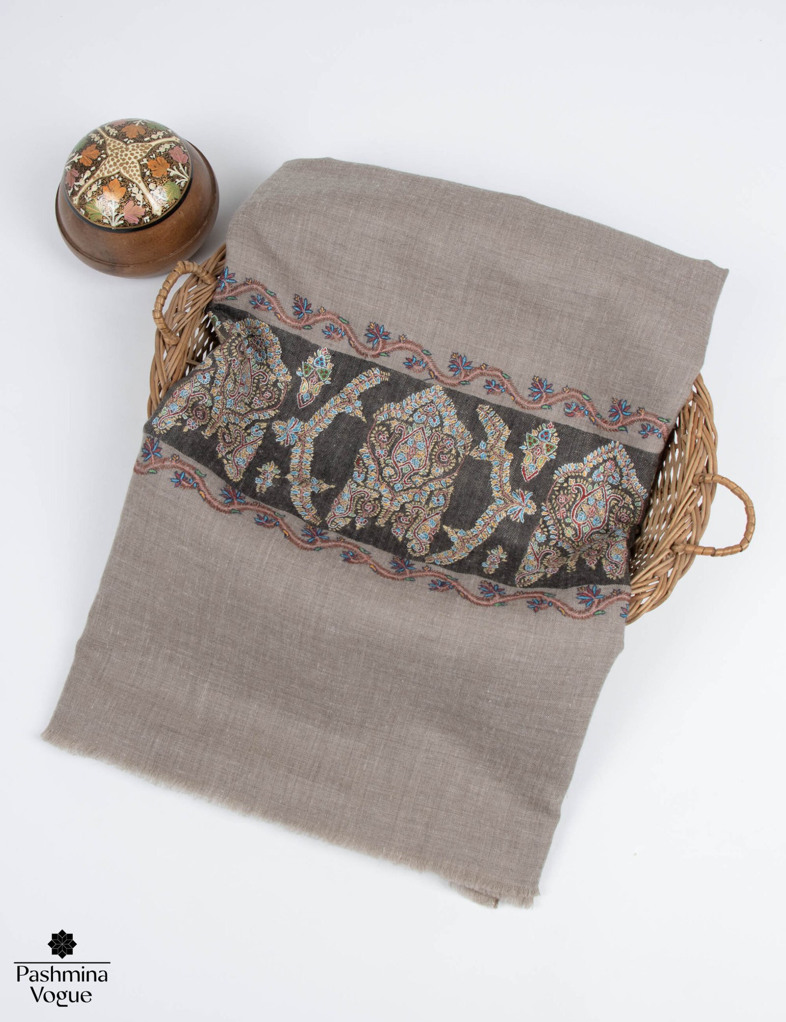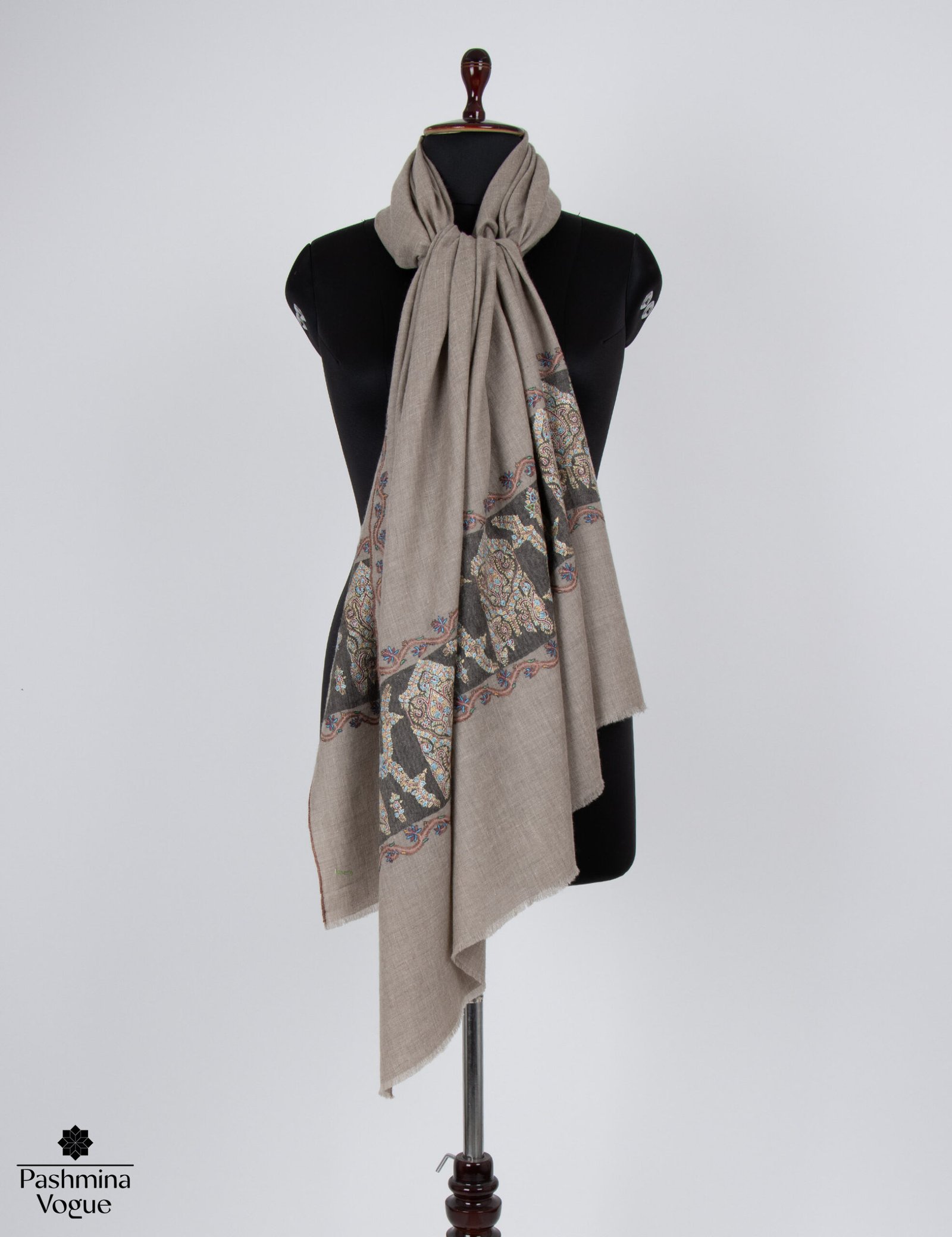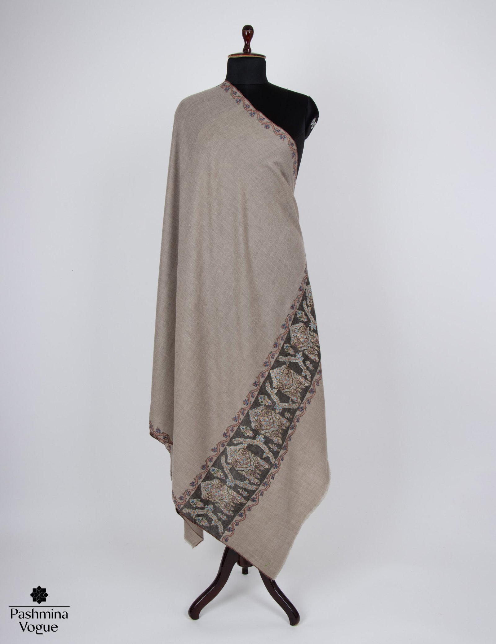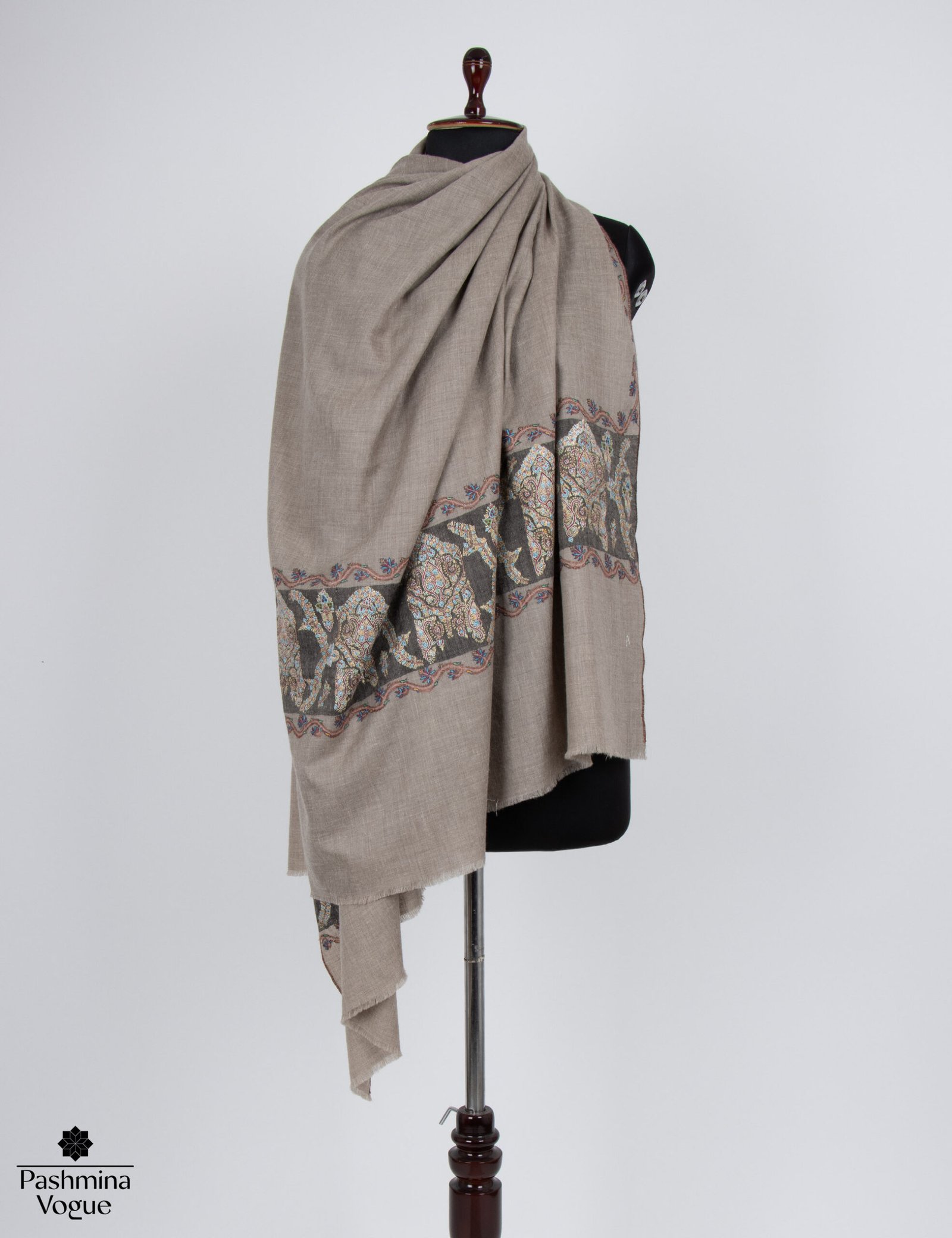 Natural Hand Embroidered Cashmere Wrap Shawl