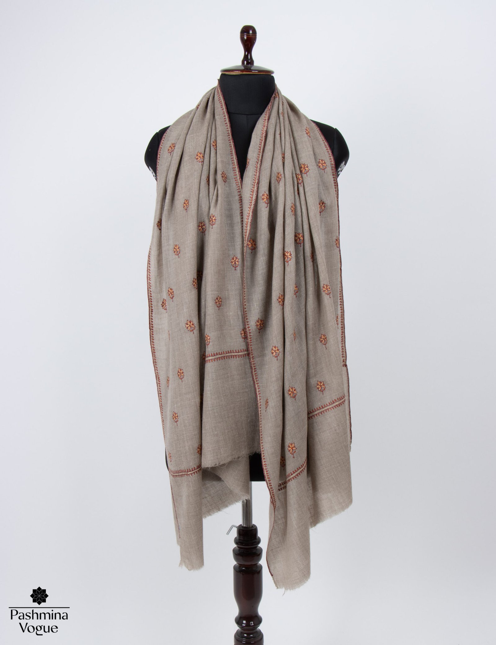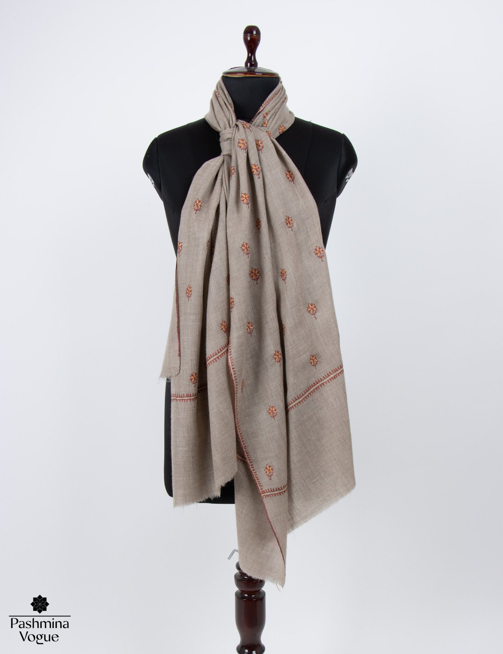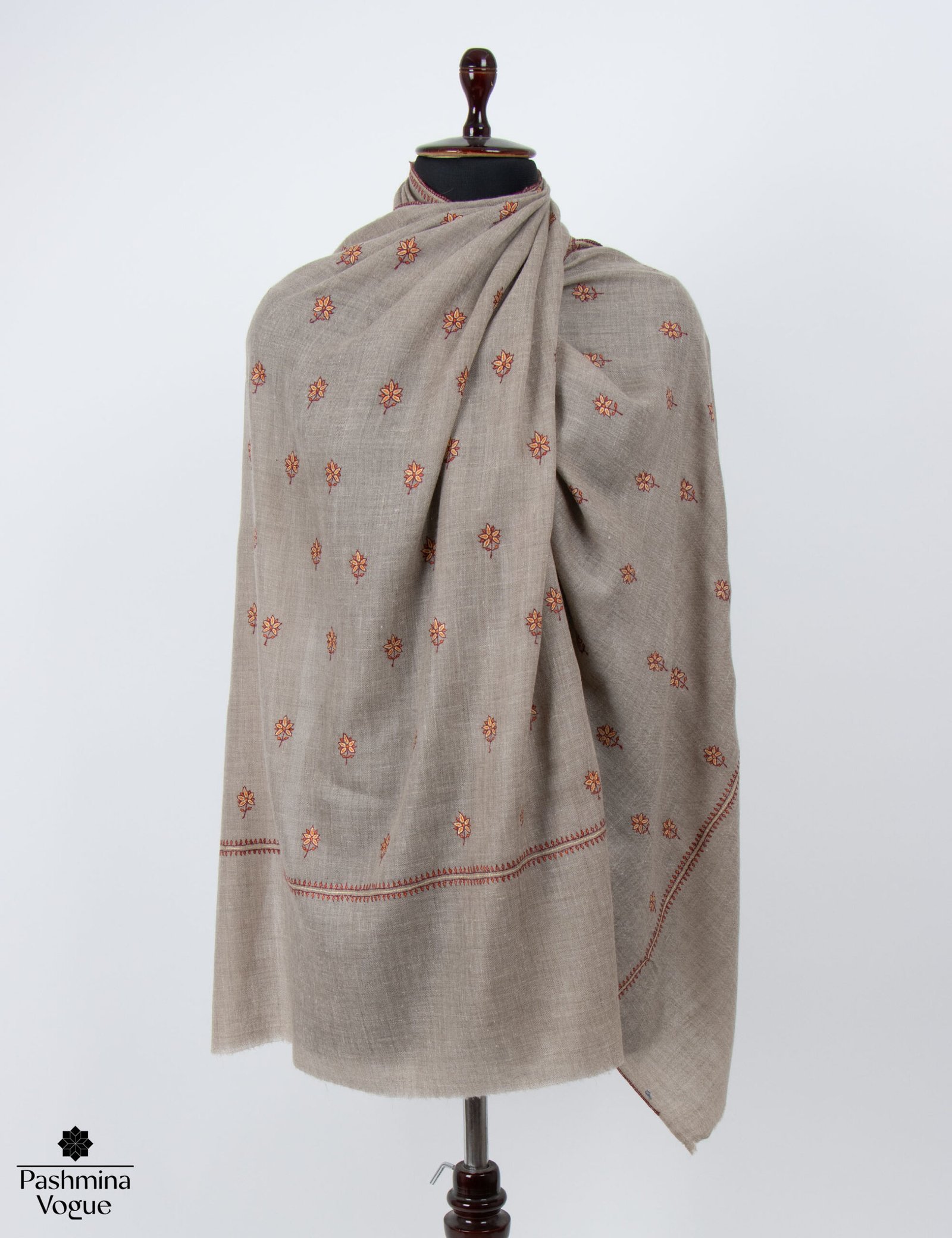Each shawl is carefully crafted by skilled artisans in Kashmir using centuries-old weaving techniques. The natural Zati tone highlights the purity of authentic pashmina while the delicate embroidery adds sophistication and timeless beauty.
