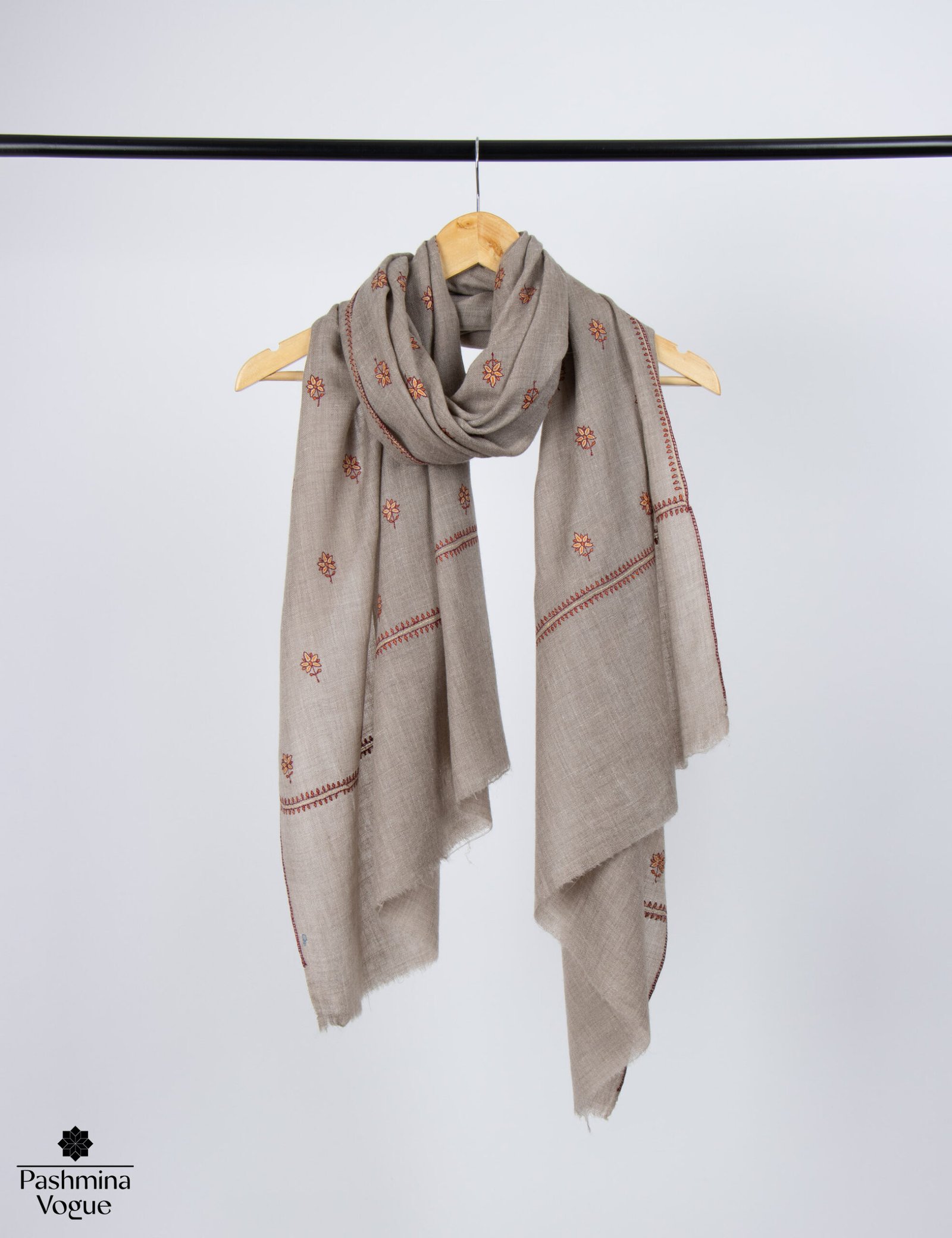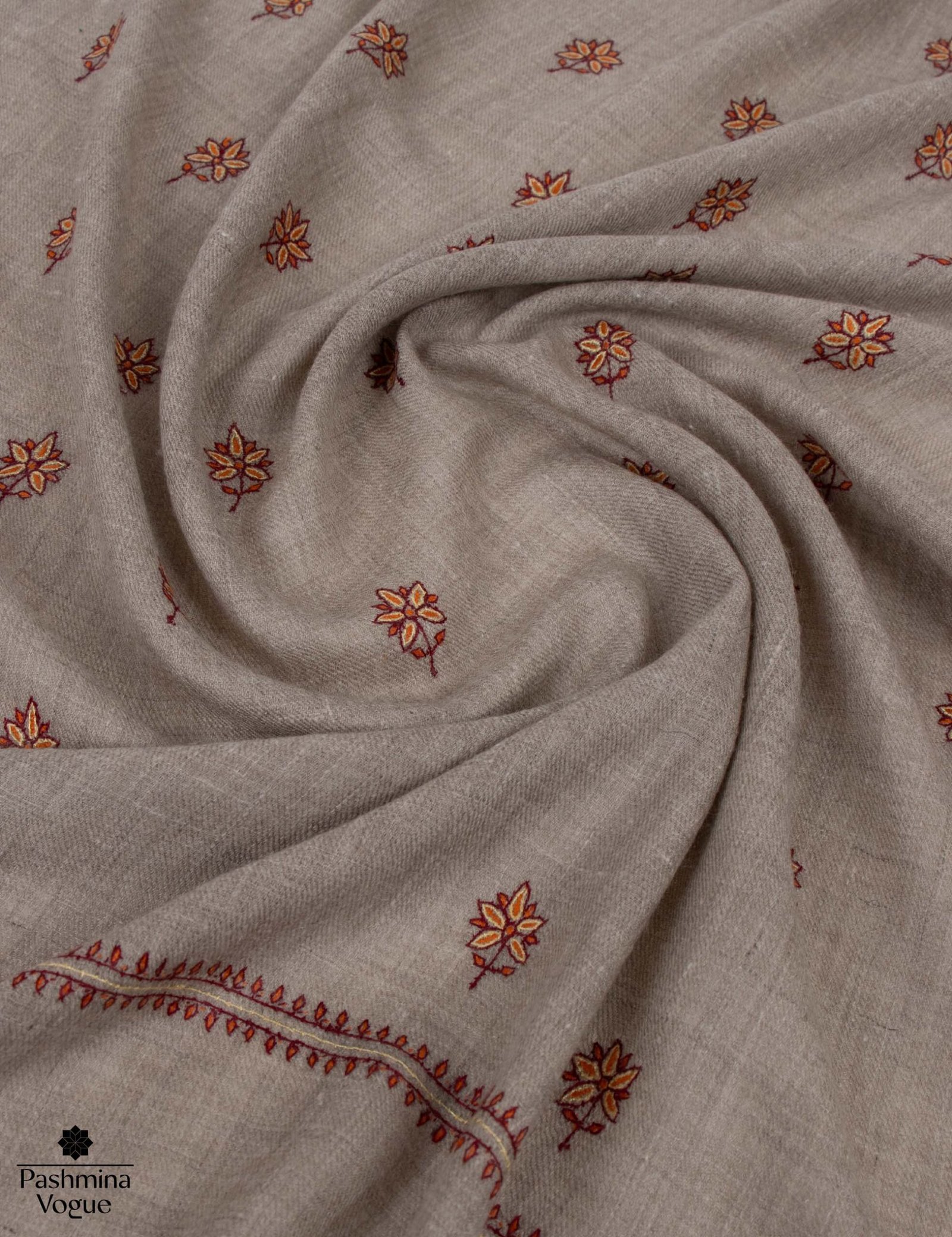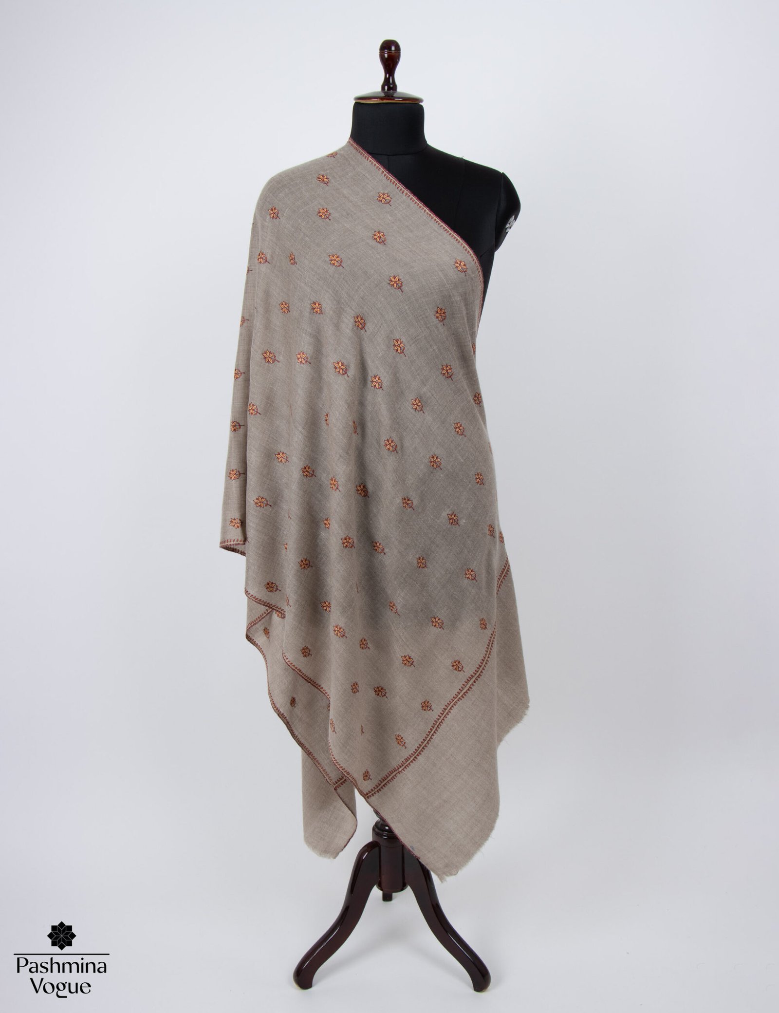 Each shawl is carefully crafted by skilled artisans in Kashmir using centuries-old weaving techniques. The natural Zati tone highlights the purity of authentic pashmina while the delicate embroidery adds sophistication and timeless beauty.