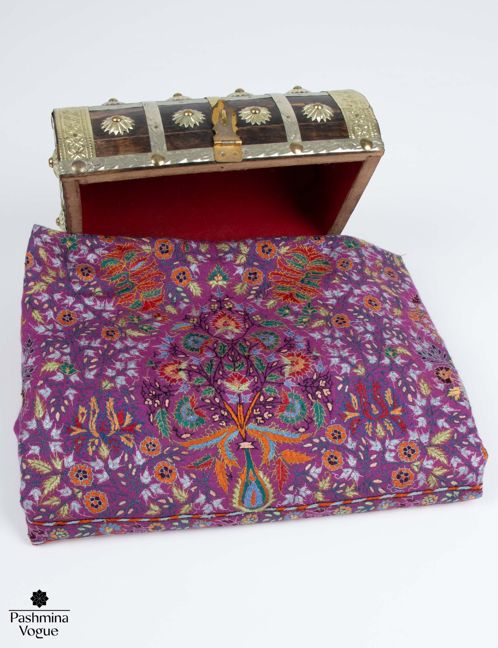 Discover the pinnacle of Kashmiri artistry with our Plum Sozni Pure Jamavar Cashmere Shawl. This exquisite shawl is a testament to meticulous craftsmanship, blending two iconic techniques: the intricate Jamavar weave and delicate Sozni embroidery. Handwoven from the finest 100% pure cashmere, its rich plum hue serves as the perfect canvas for the detailed floral patterns and traditional motifs. The combination of the all-over weave and subtle needlework creates a luxurious, lightweight wrap that offers unparalleled warmth, softness, and elegance. This authentic pashmina is more than an accessory—it’s a wearable piece of art.