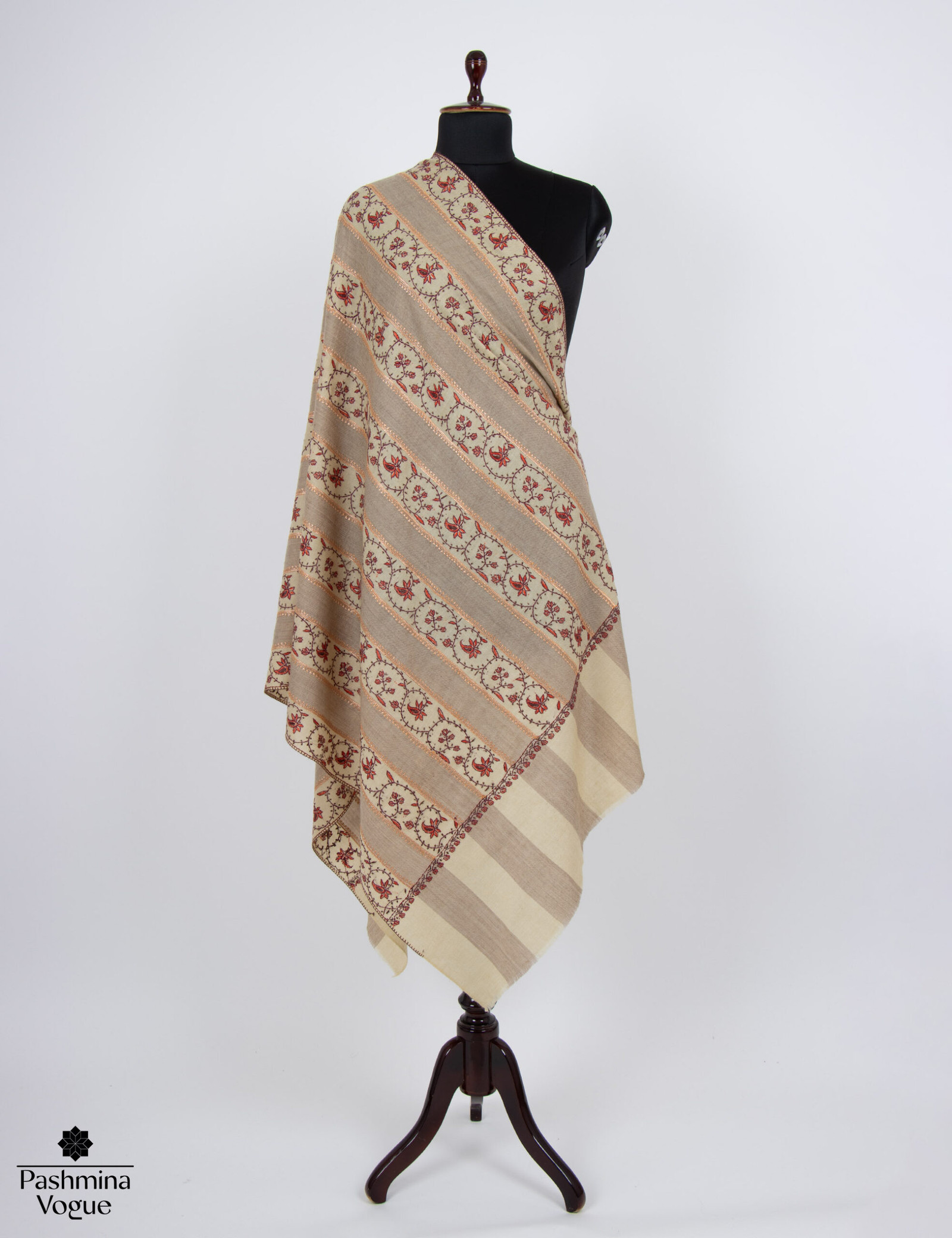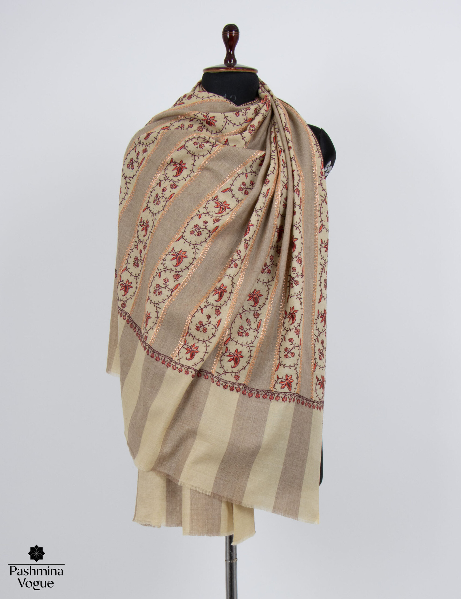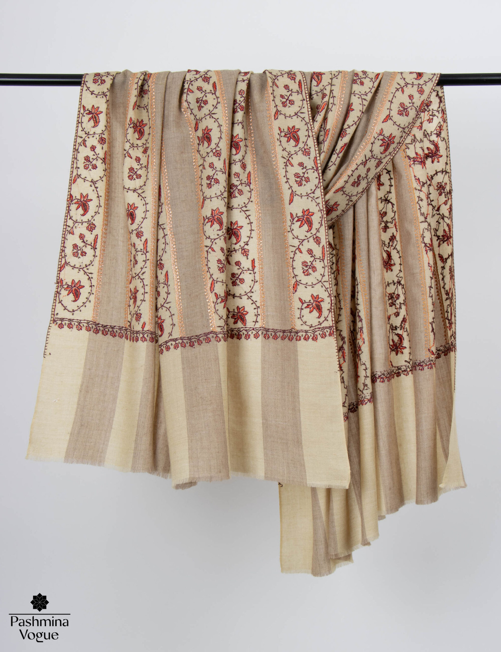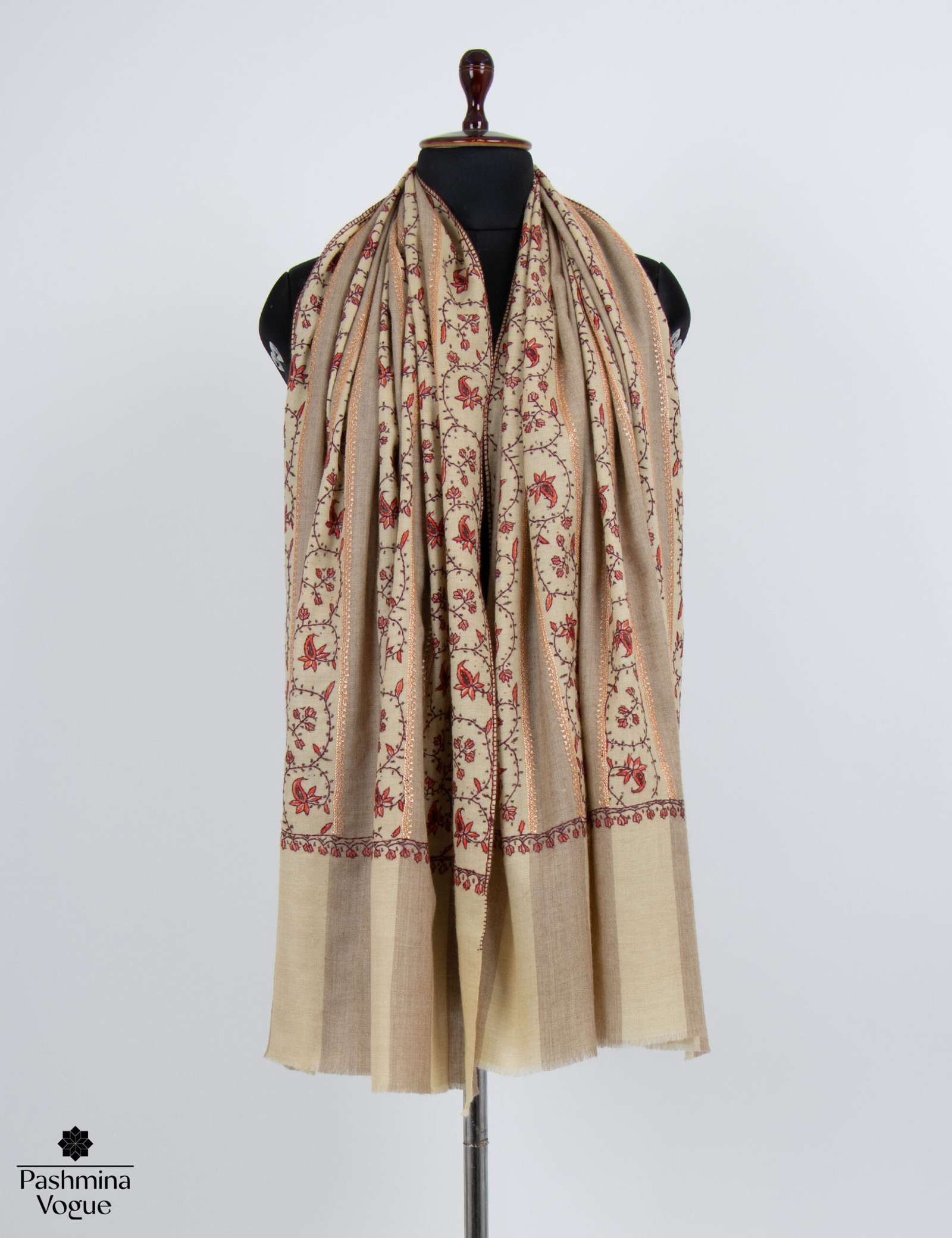 Wrap yourself in the rich artistry of our Sozni Hand Embroidered Merino Wool Scarf. This exquisite shawl blends the luxurious softness and superior warmth of fine Merino wool with the intricate craftsmanship of Kashmir. It is meticulously adorned with traditional Kashmiri Sozni embroidery—fine, delicate needlework that covers the surface—and enhanced with shimmering Tilla (metallic) thread accents. This versatile scarf drapes beautifully, making it an elegant, warm accessory for any occasion. It is a timeless piece that embodies the skill of Kashmiri artisans.