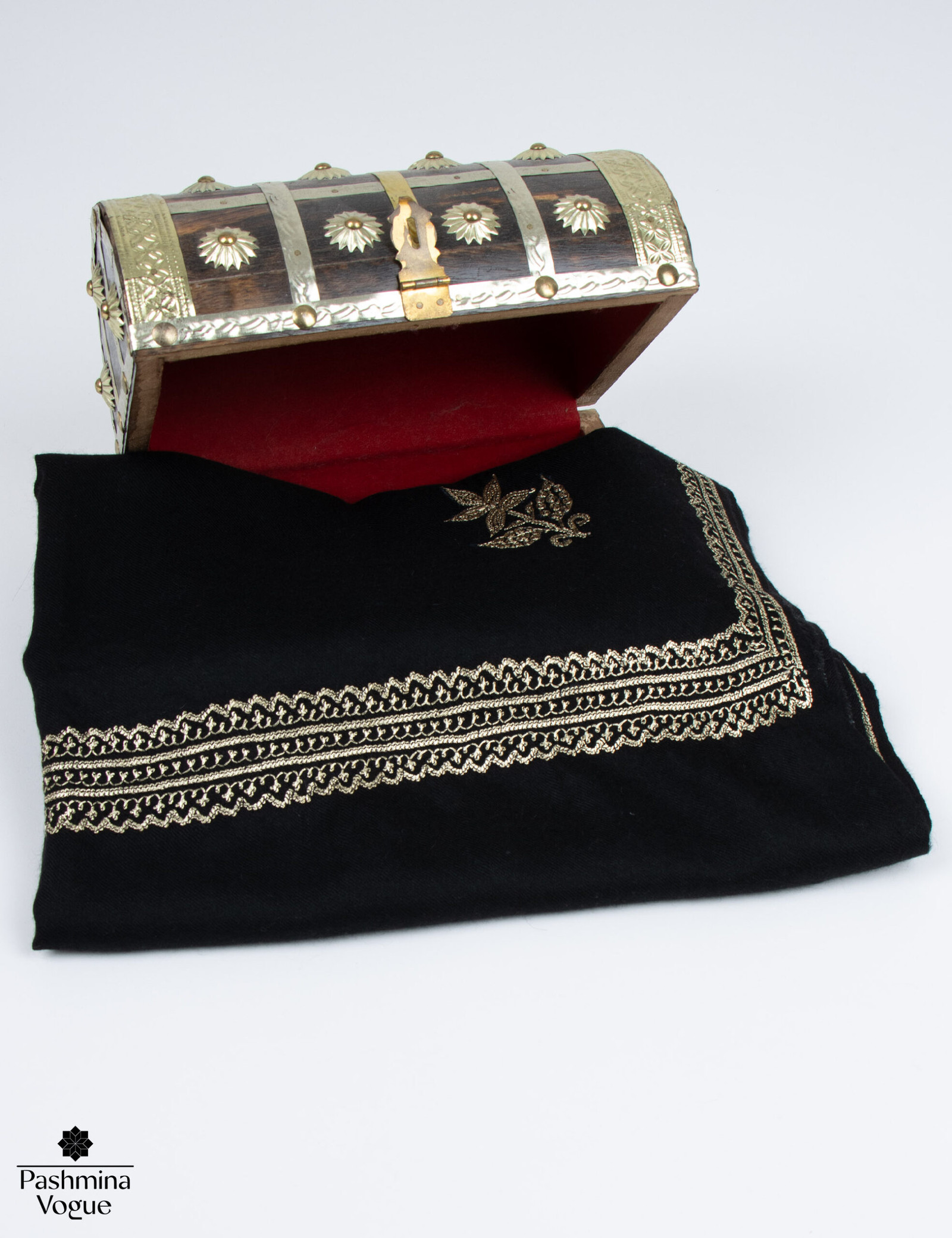 Adorn yourself in the sophisticated artistry of our Tilla Embroidered Kashmiri Pashmina Scarf. This elegant wrap is a masterpiece of authentic Kashmiri craftsmanship, meticulously handwoven from the finest 100% pure cashmere (pashmina). The luxurious fabric is embellished with traditional Tilla embroidery—a delicate metallic threadwork, often in gold or silver, that adds a subtle, luminous sparkle and intricate patterns. Versatile and lightweight yet incredibly warm, this timeless cashmere scarf provides an exquisite drape and embodies the enduring elegance of Kashmir.
